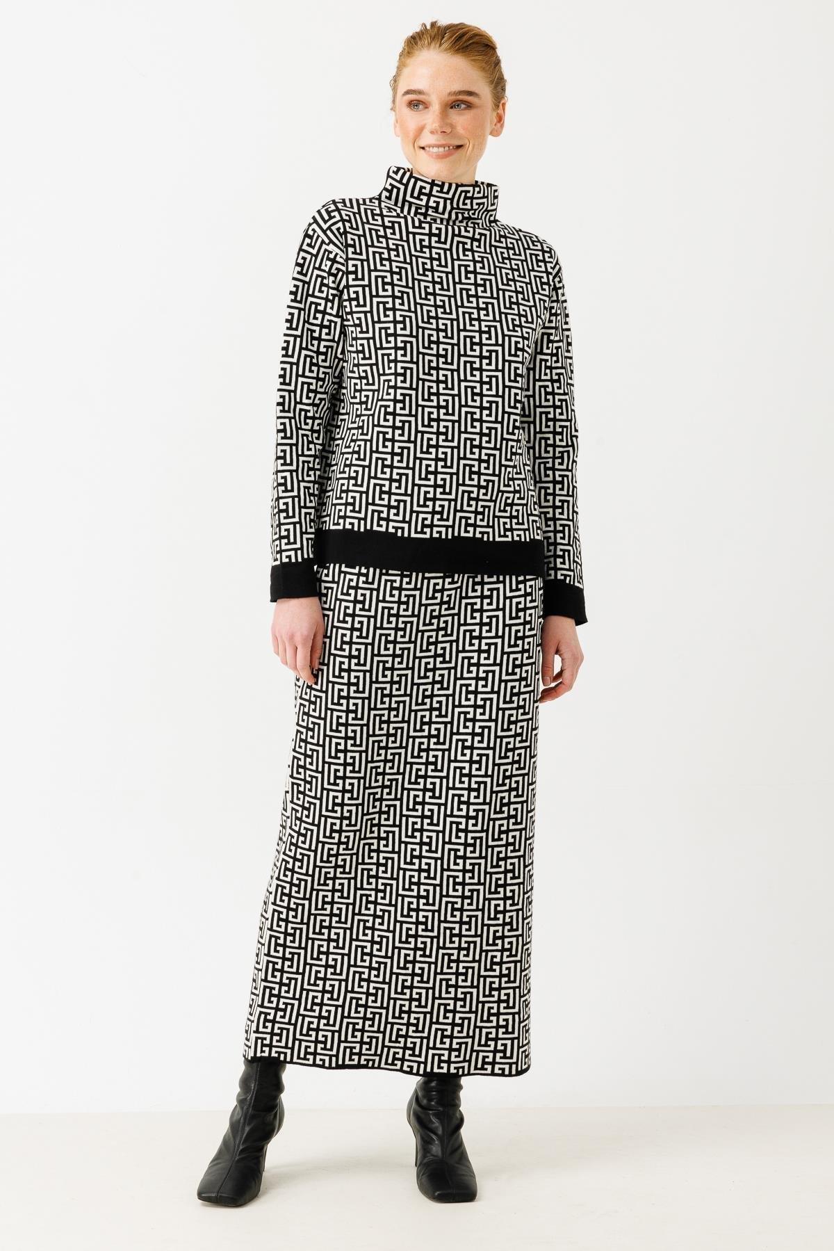 - Desen Triko Kadın Tam Balıkçı Yaka Yün Kazak-23159