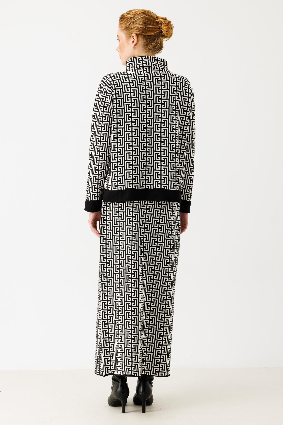 - Desen Triko Kadın Dik Yaka Yün Hırka-23203