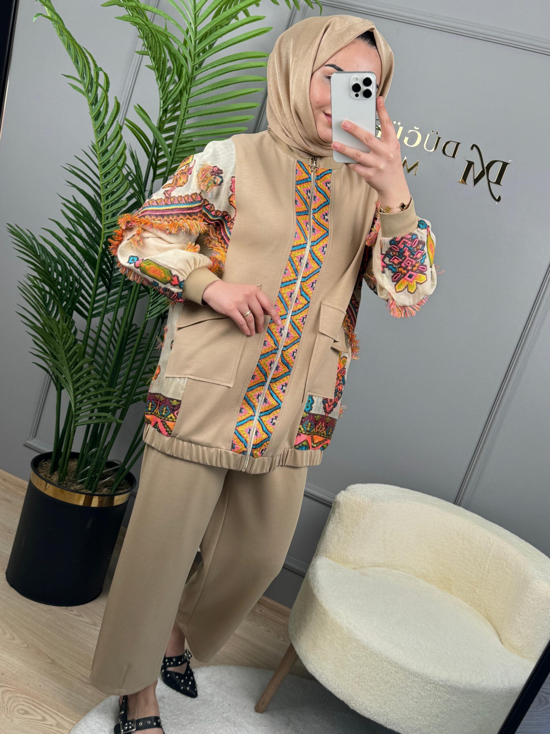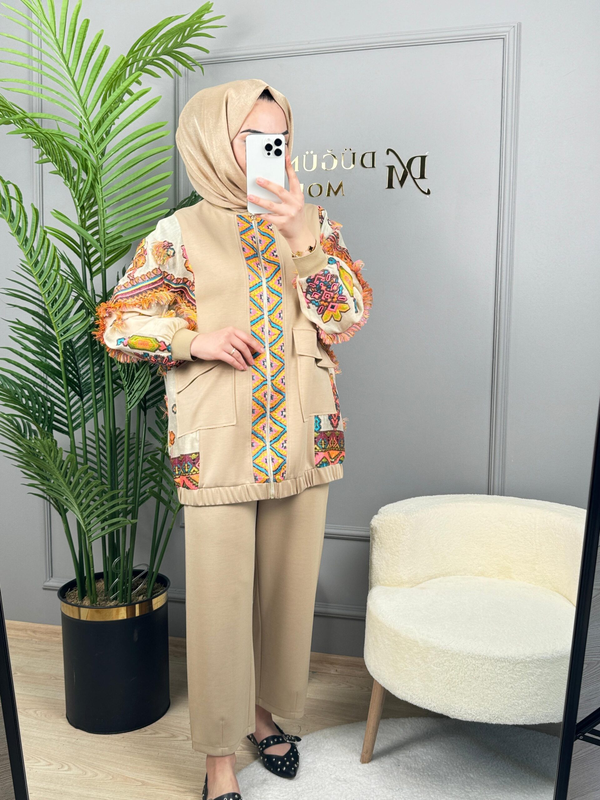 Ghisa Etnik Desenli İkili Takım-3415