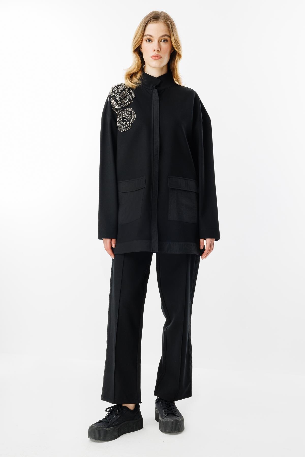 Çözgü Ceketi Tamamı Taş Detaylı Pantolonlu Takım-300