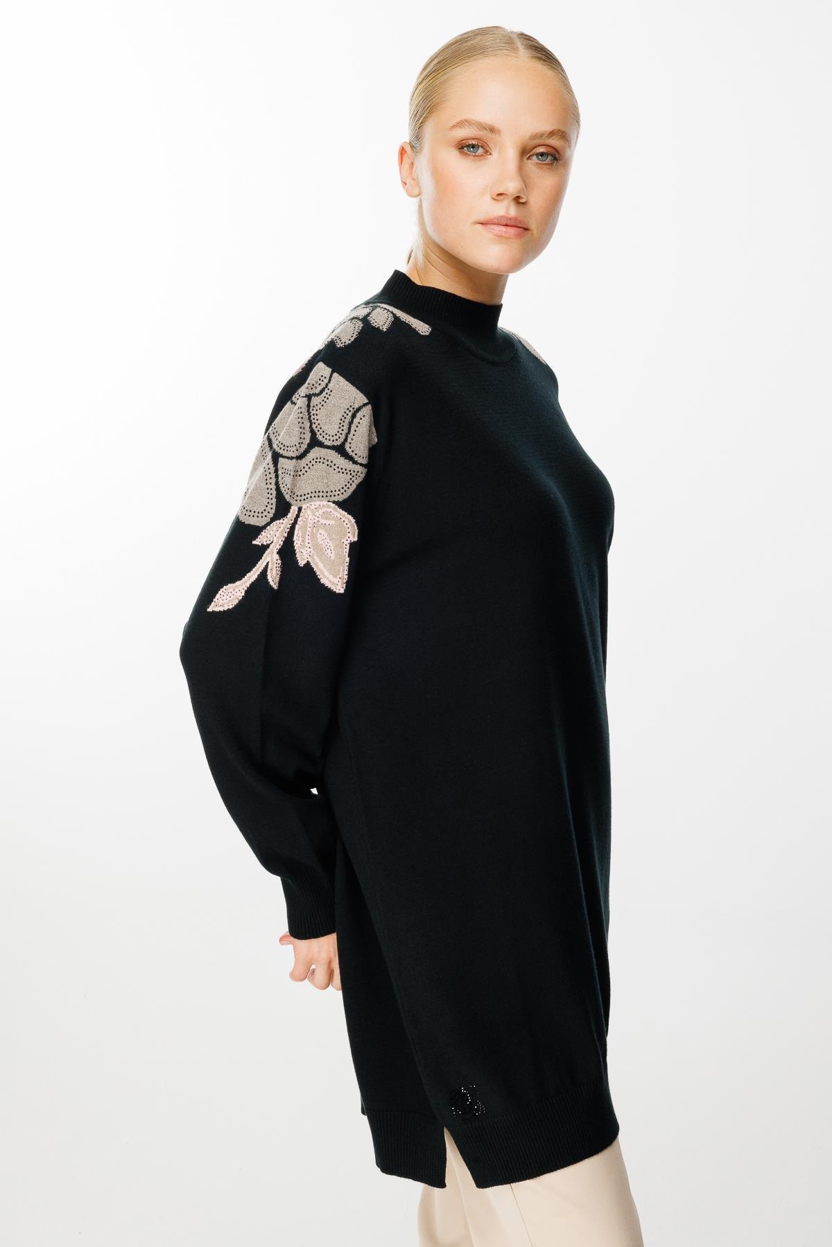 Ghisa Omuzları Desen Detaylı Triko Tunik-4664