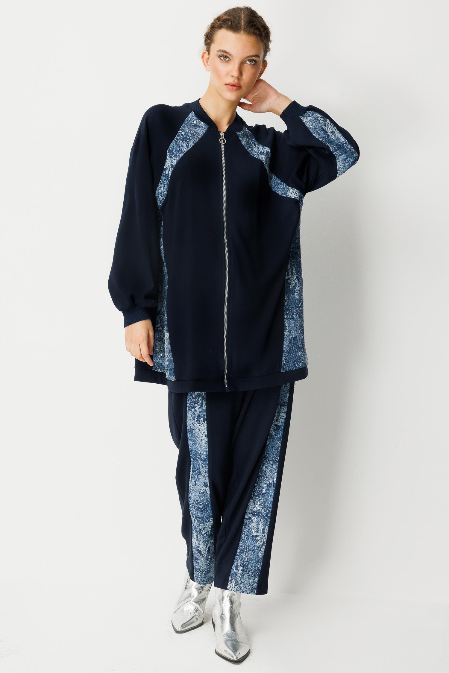 - My312 Yaka Taş Detaylı Pantolonlu Takım-1545