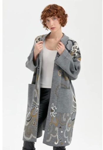 - Desen Triko Geyik Desenli Yün Uzun Hırka-23012
