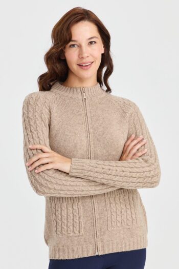 - Desen Triko Kadın Dik Yaka Yün Hırka-23203