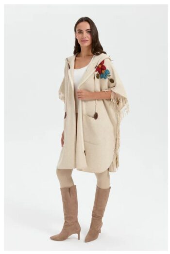 - Desen Triko Kadın Kapüşonlu Omuzu Çiçek İşlemeli Panço-24064
