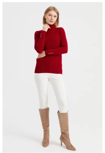 - Desen Triko Kadın Sıfır Yaka Kol Ucu Düğmeli Yün Kazak-23158