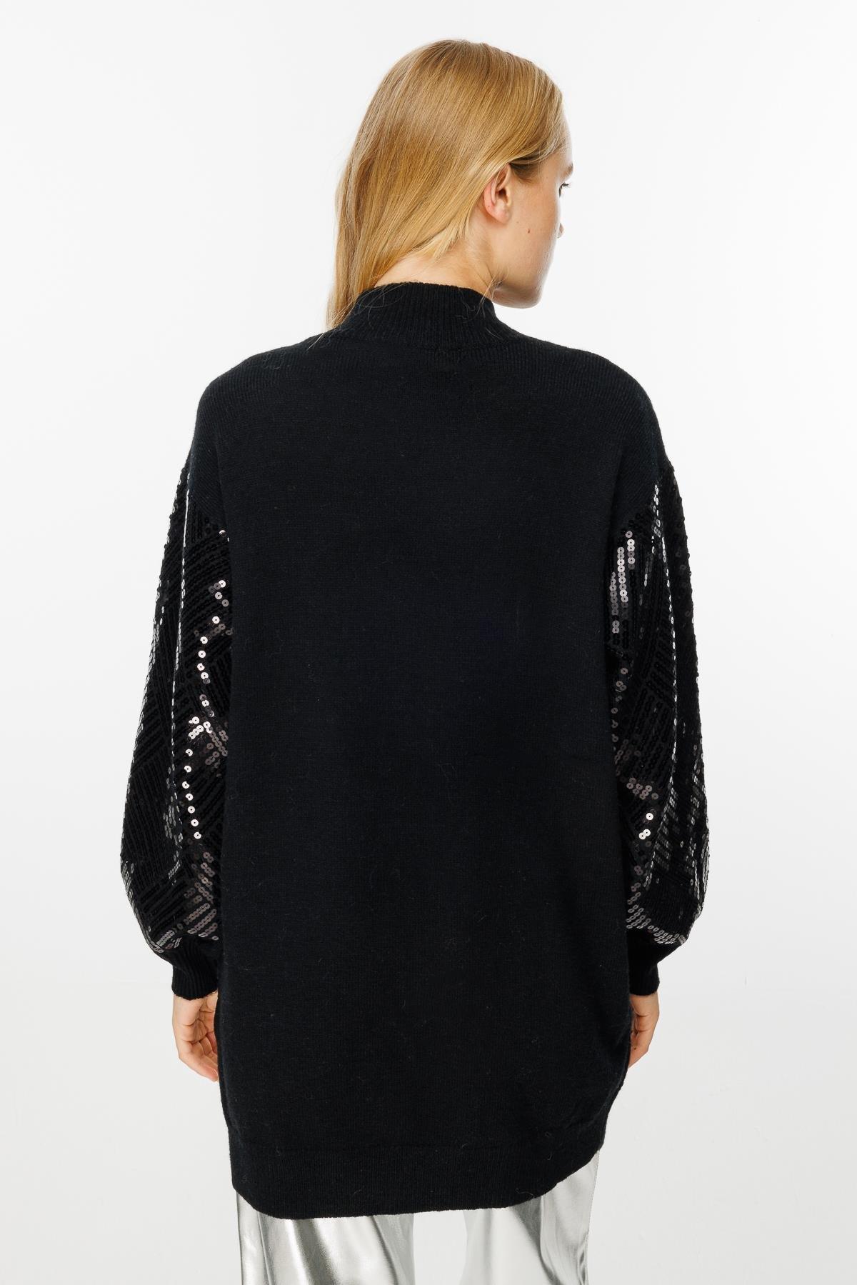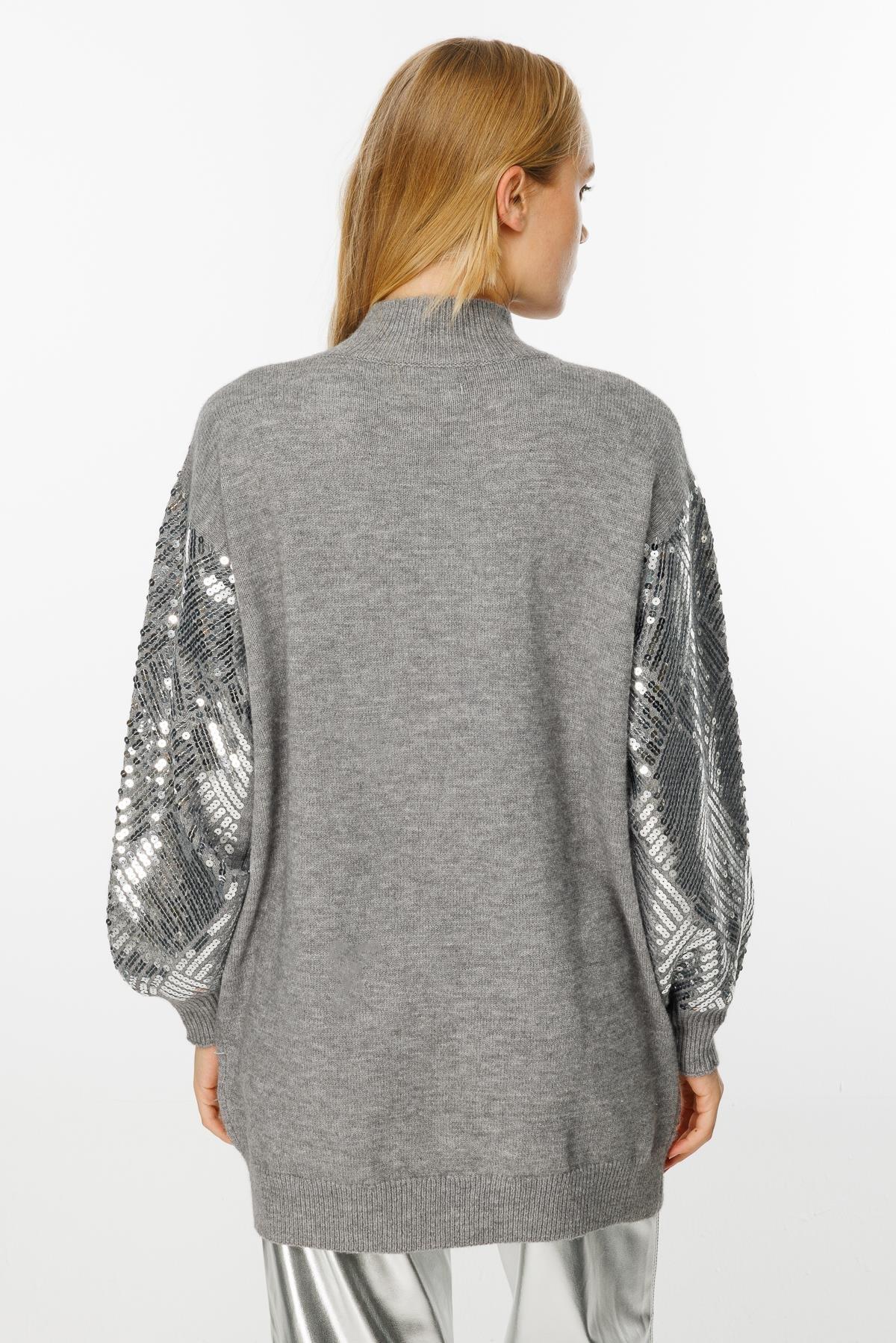 - Desen Triko Kadın Sıfır Yaka Kol Ucu Düğmeli Yün Kazak-23158