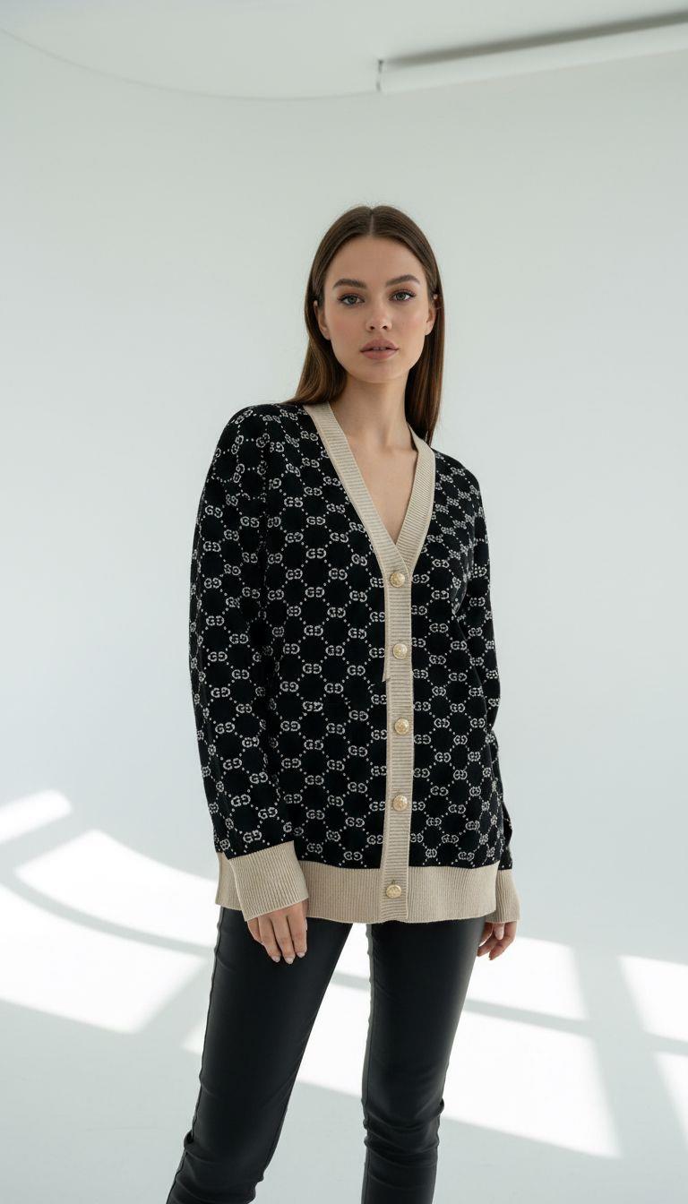 - Desen Triko Kadın Dik Yaka Yün Hırka-23203