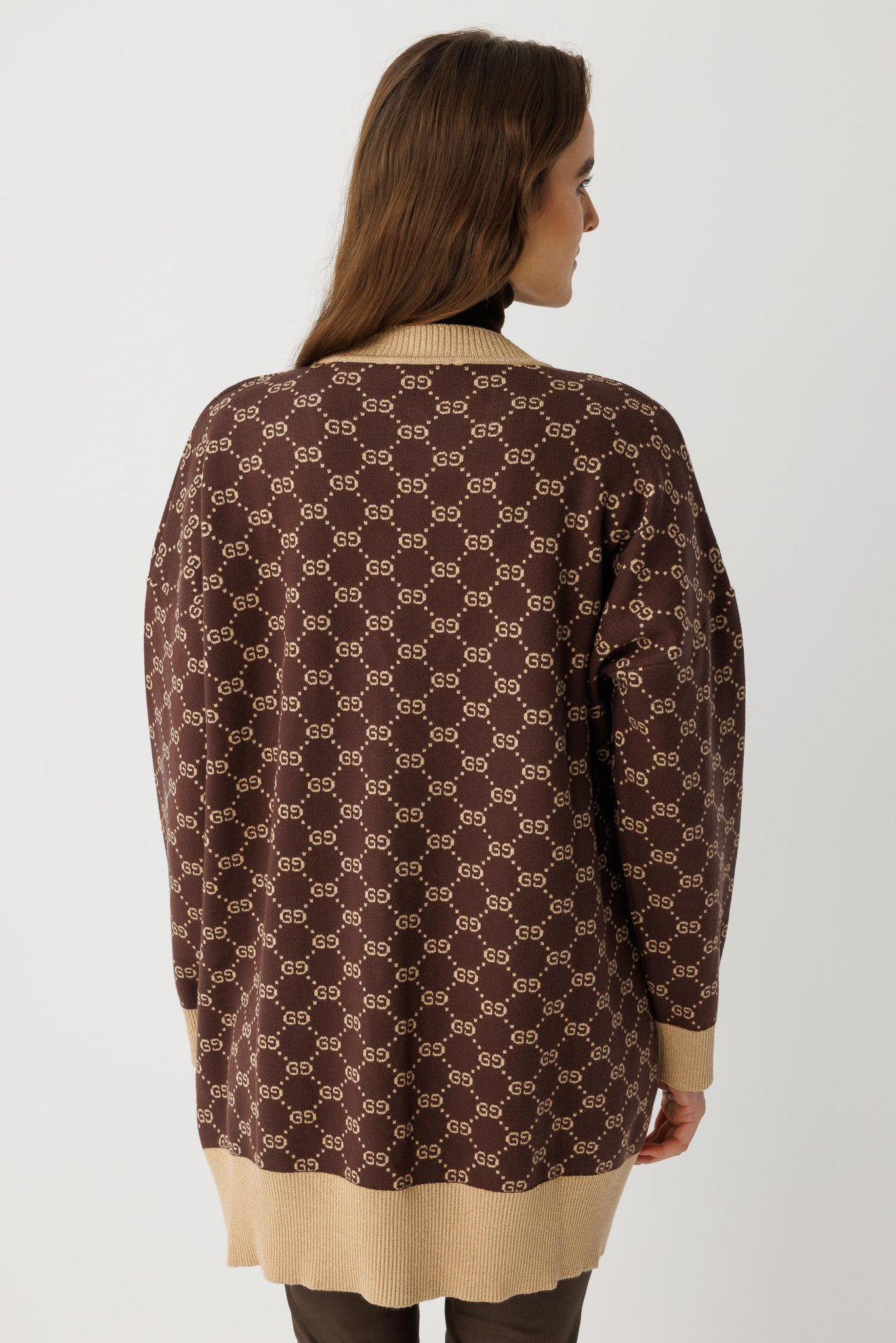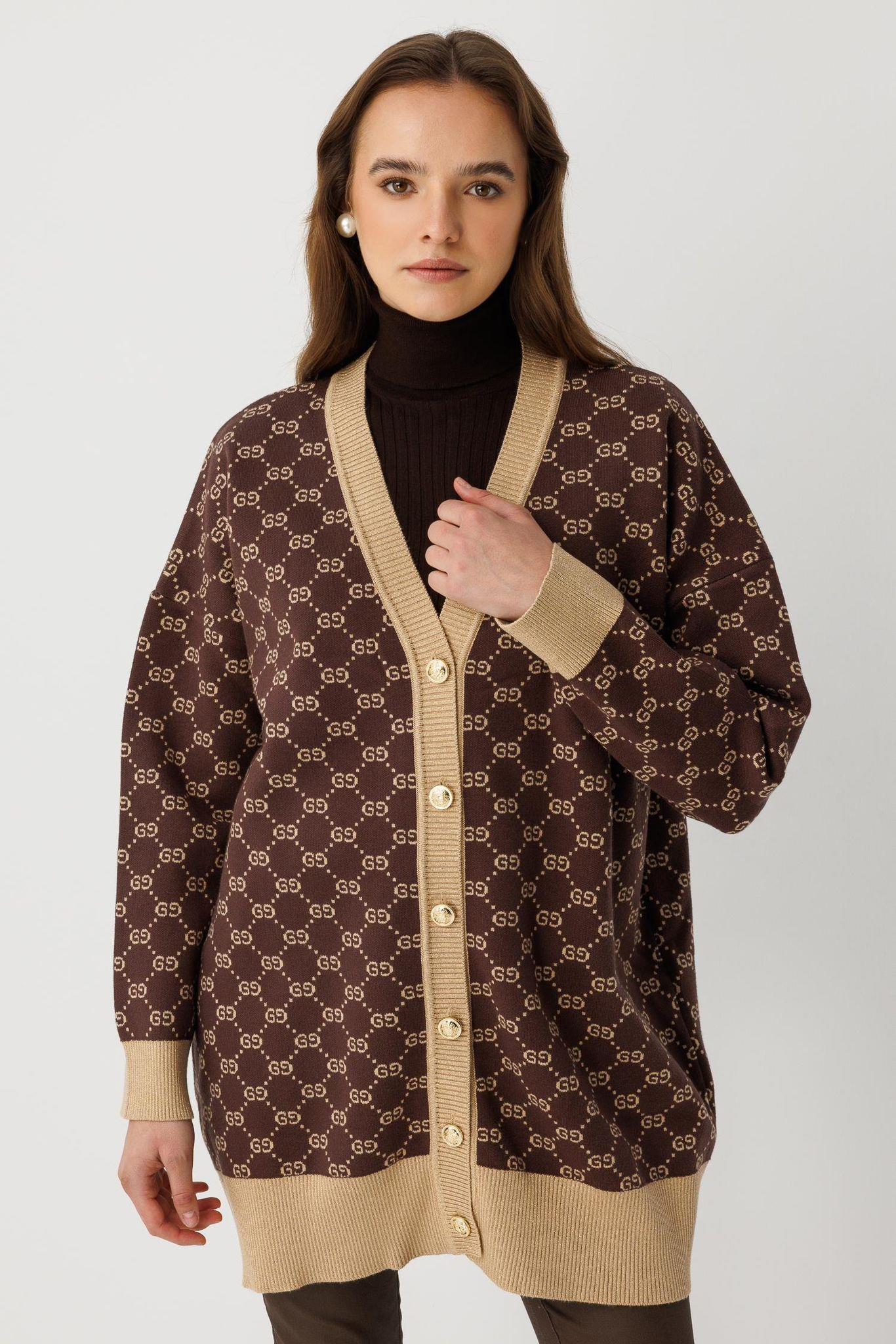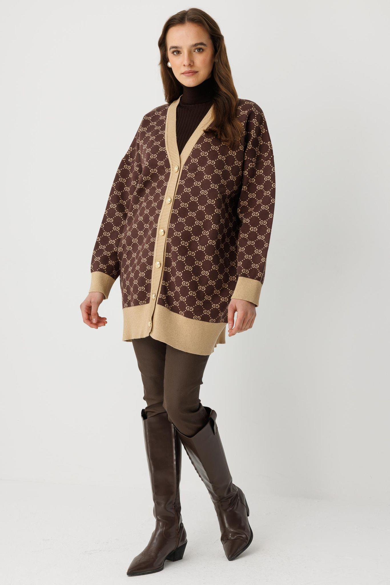 - Desen Triko Geyik Desenli Yün Uzun Hırka-23012