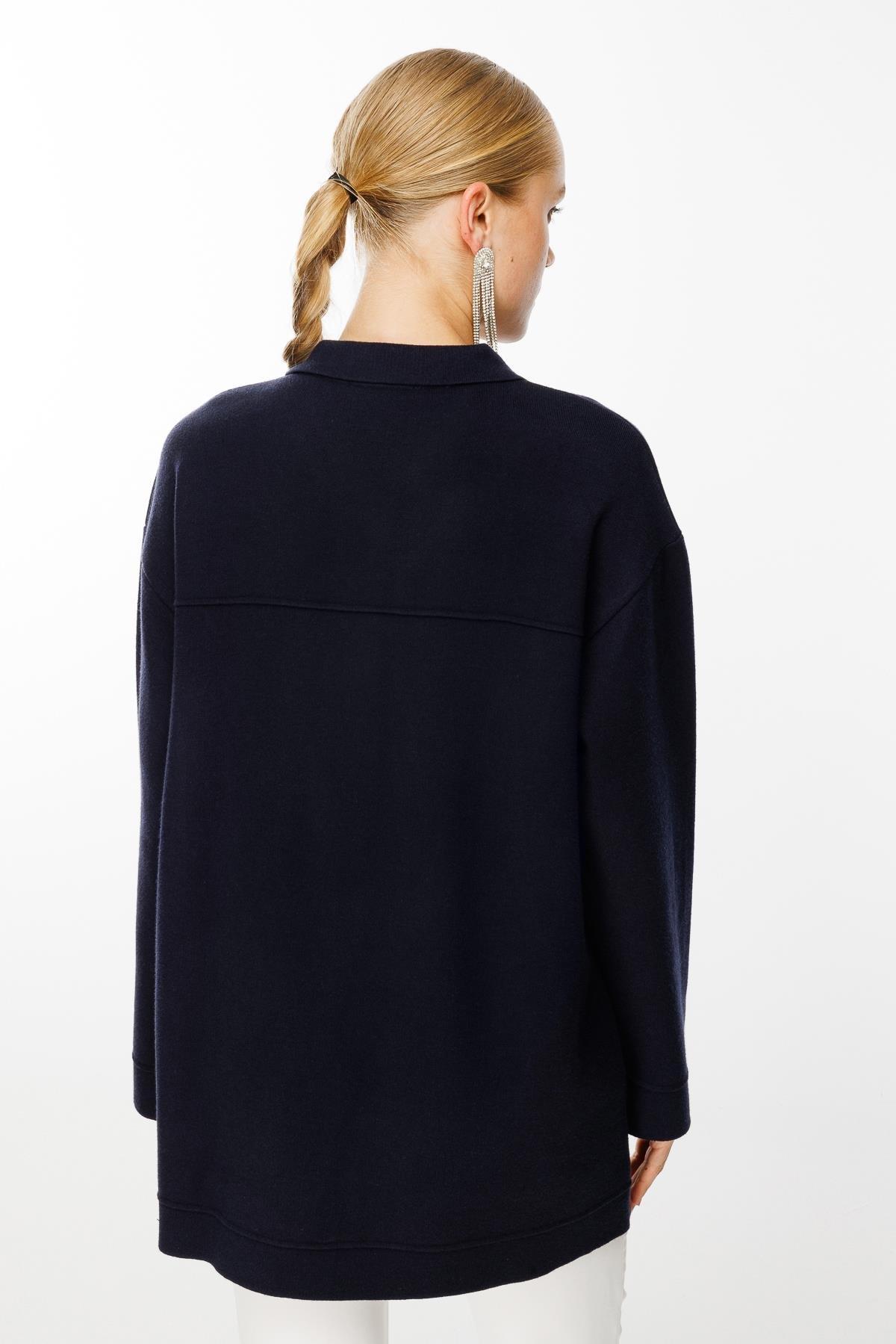 - Desen Triko Kadın Dik Yaka Yün Hırka-23203