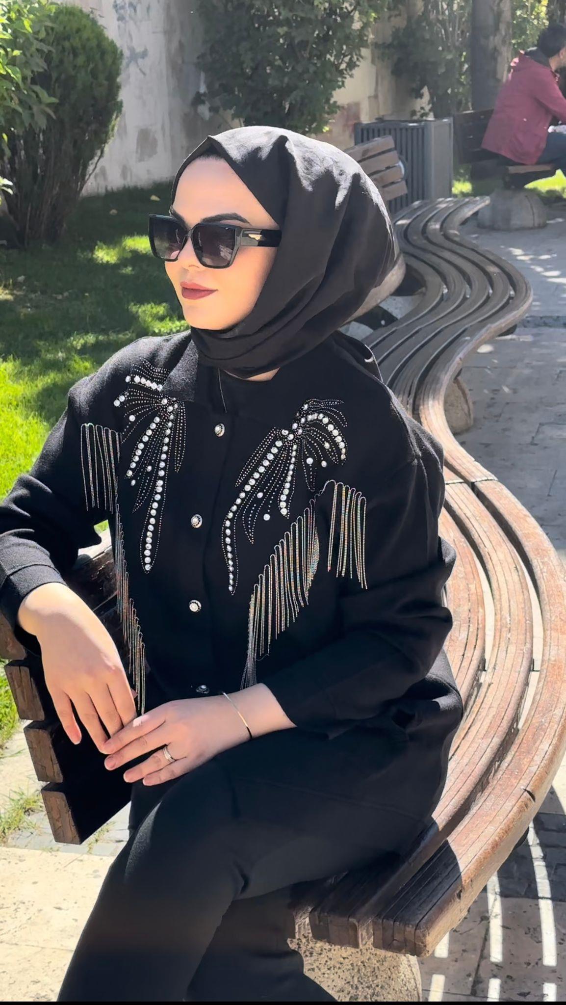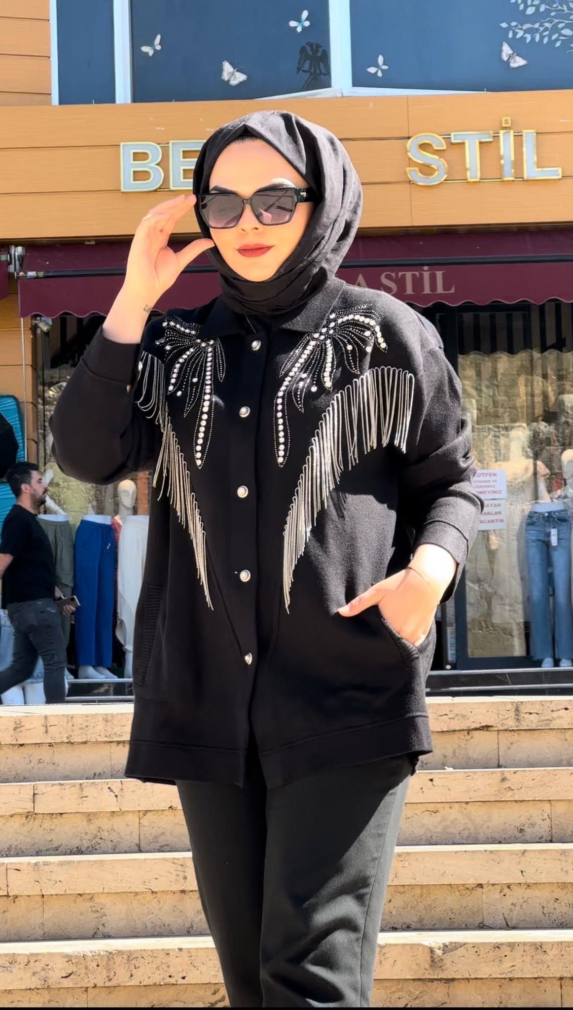 - My312 Yaka Taş Detaylı Pantolonlu Takım-1545