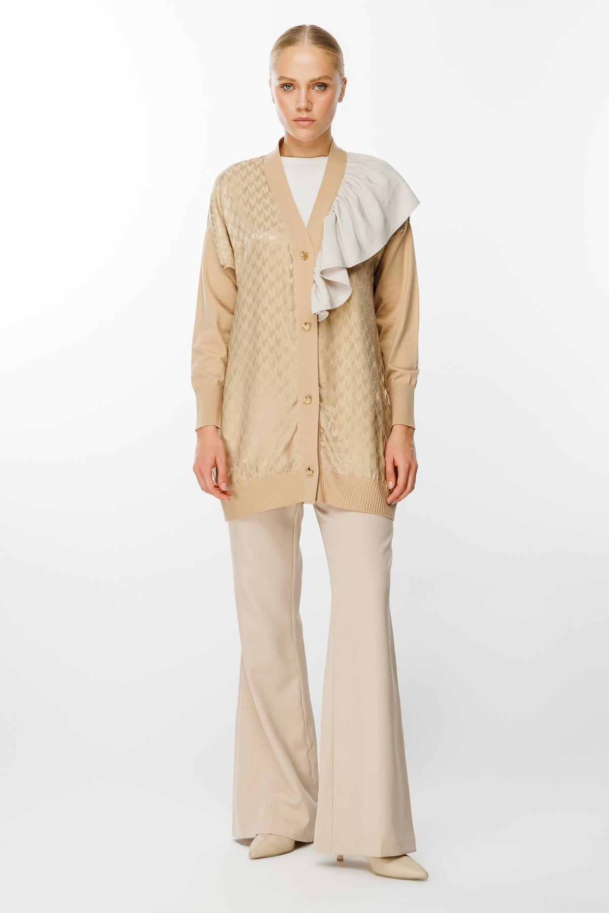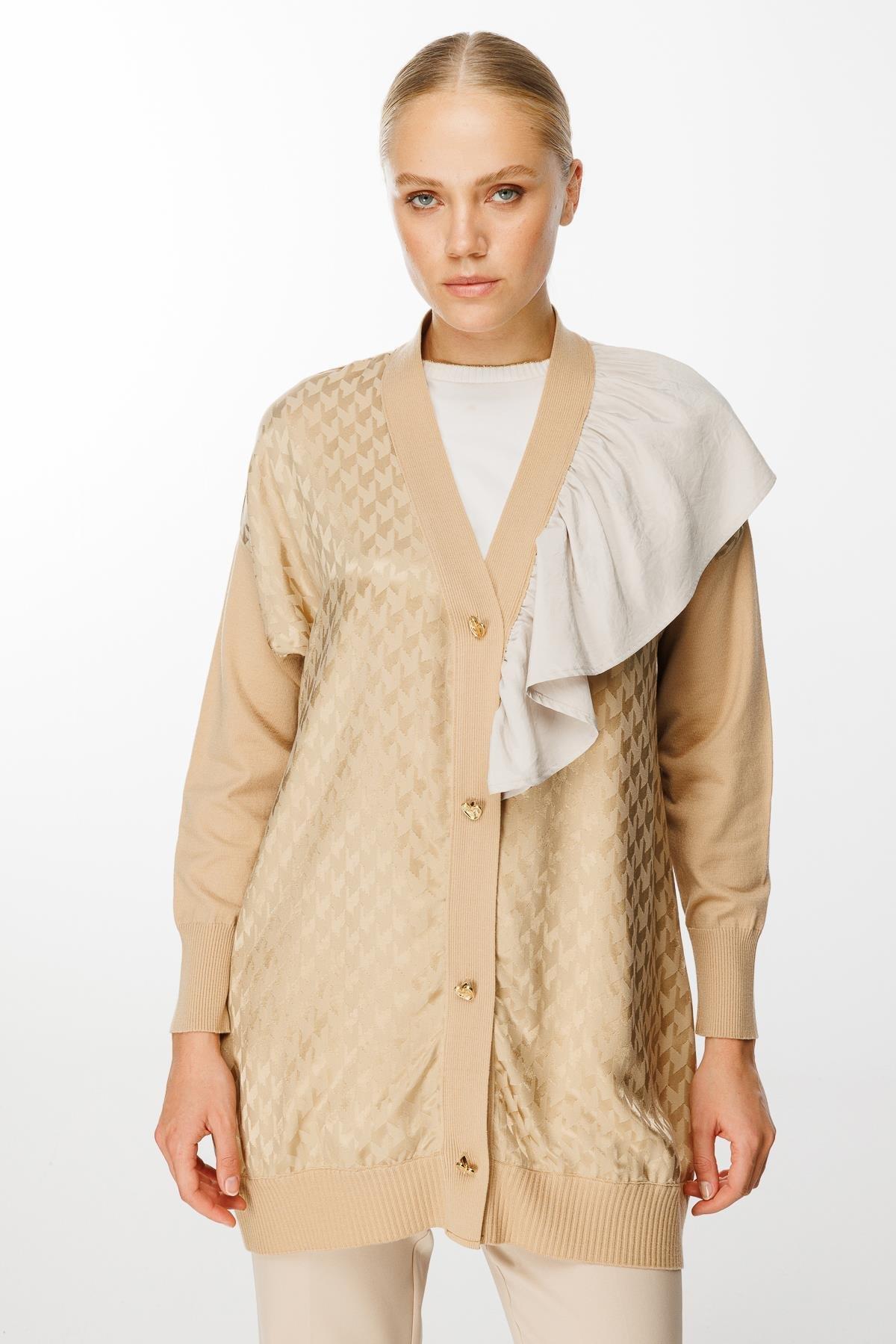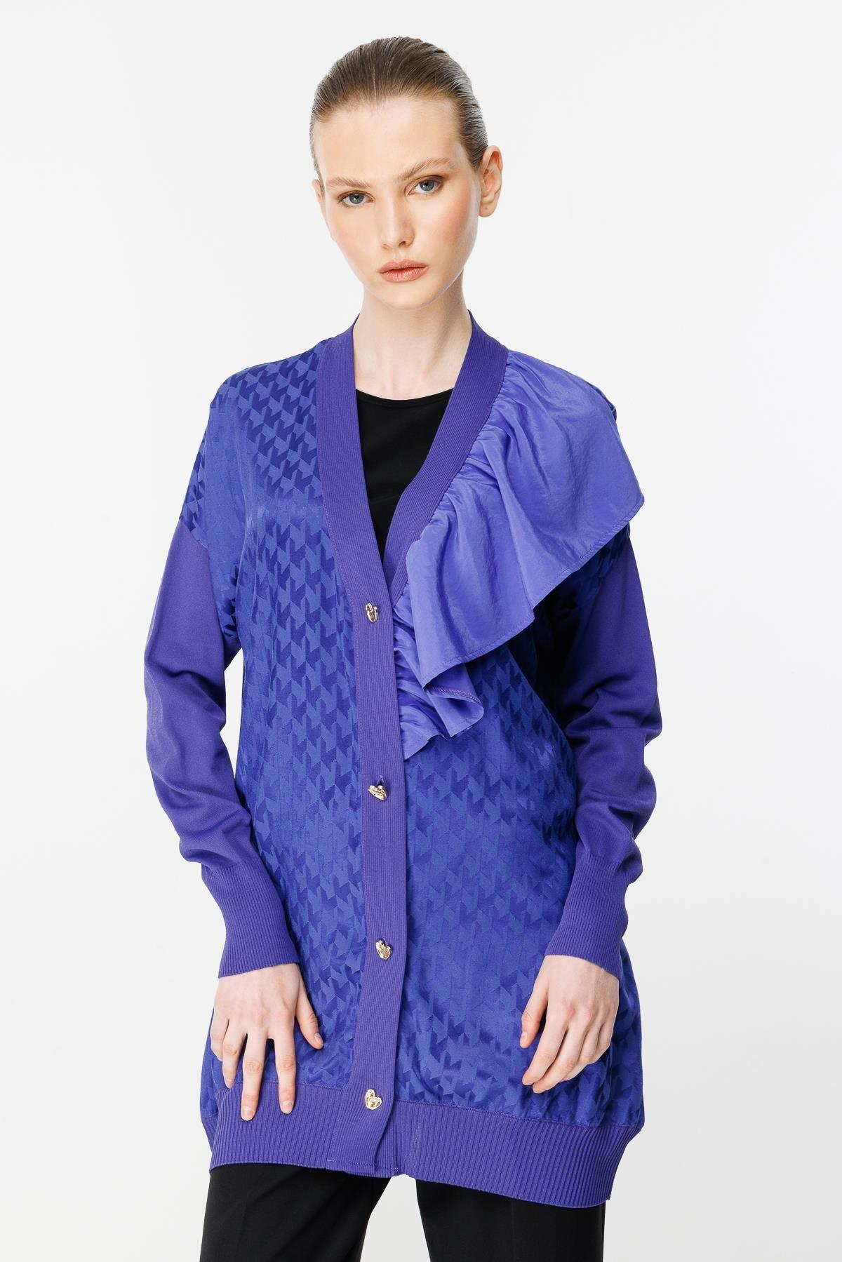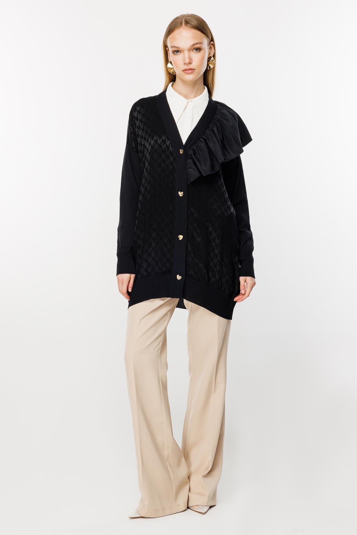Ghisa Yaka Fırfırlı Merserize Hırka-3603