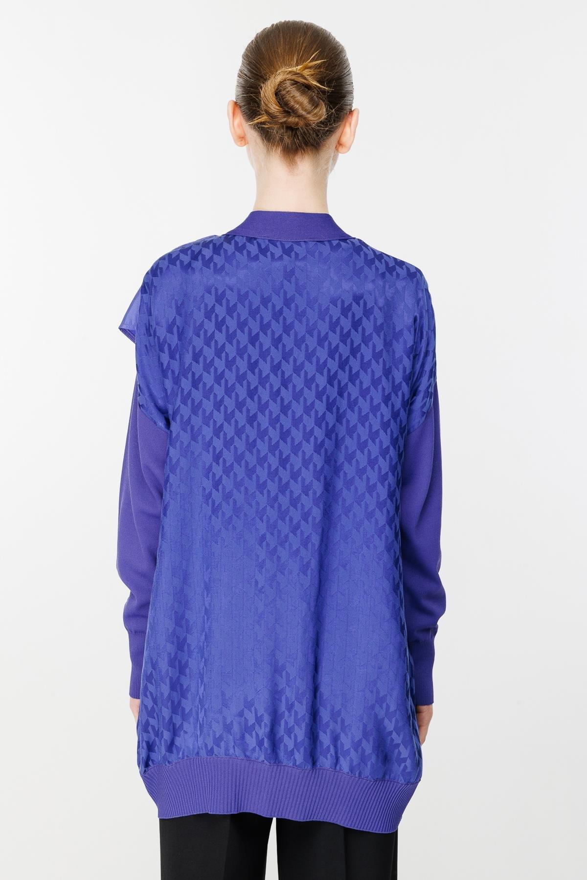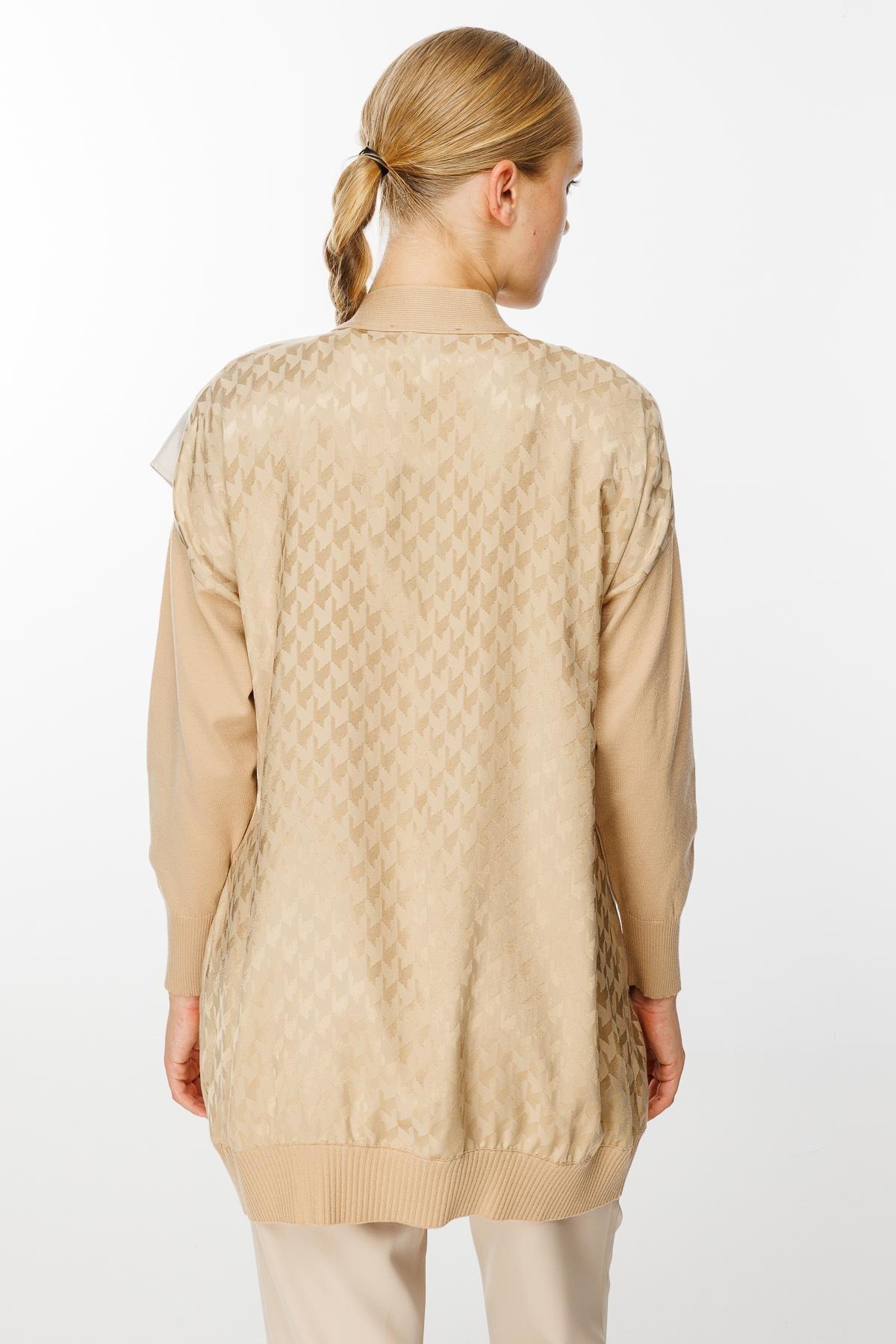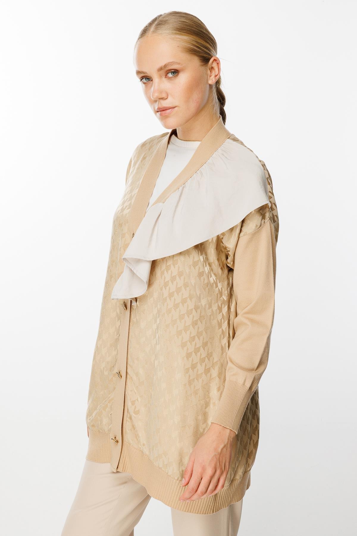 - Desen Triko Kadın Dik Yaka Yün Hırka-23203