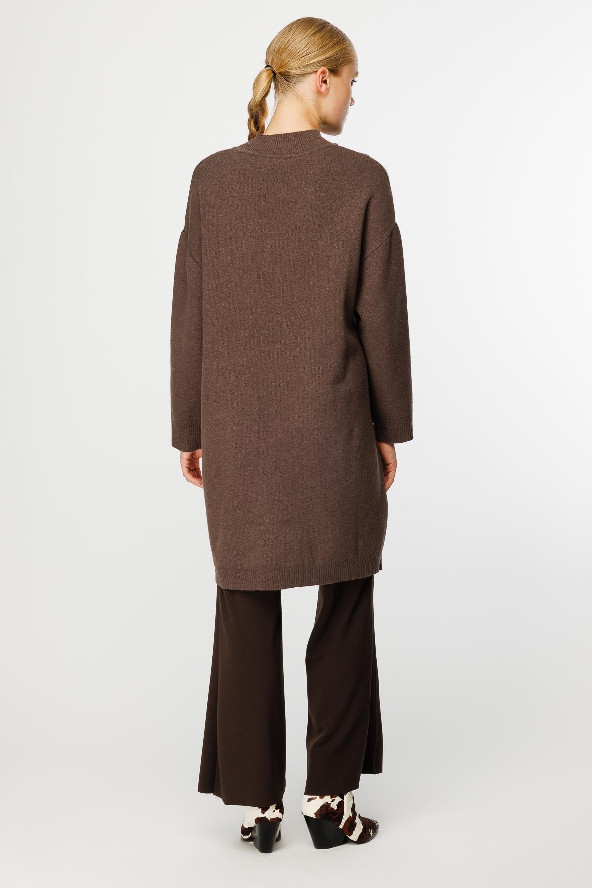- Desen Triko Geyik Desenli Yün Uzun Hırka-23012