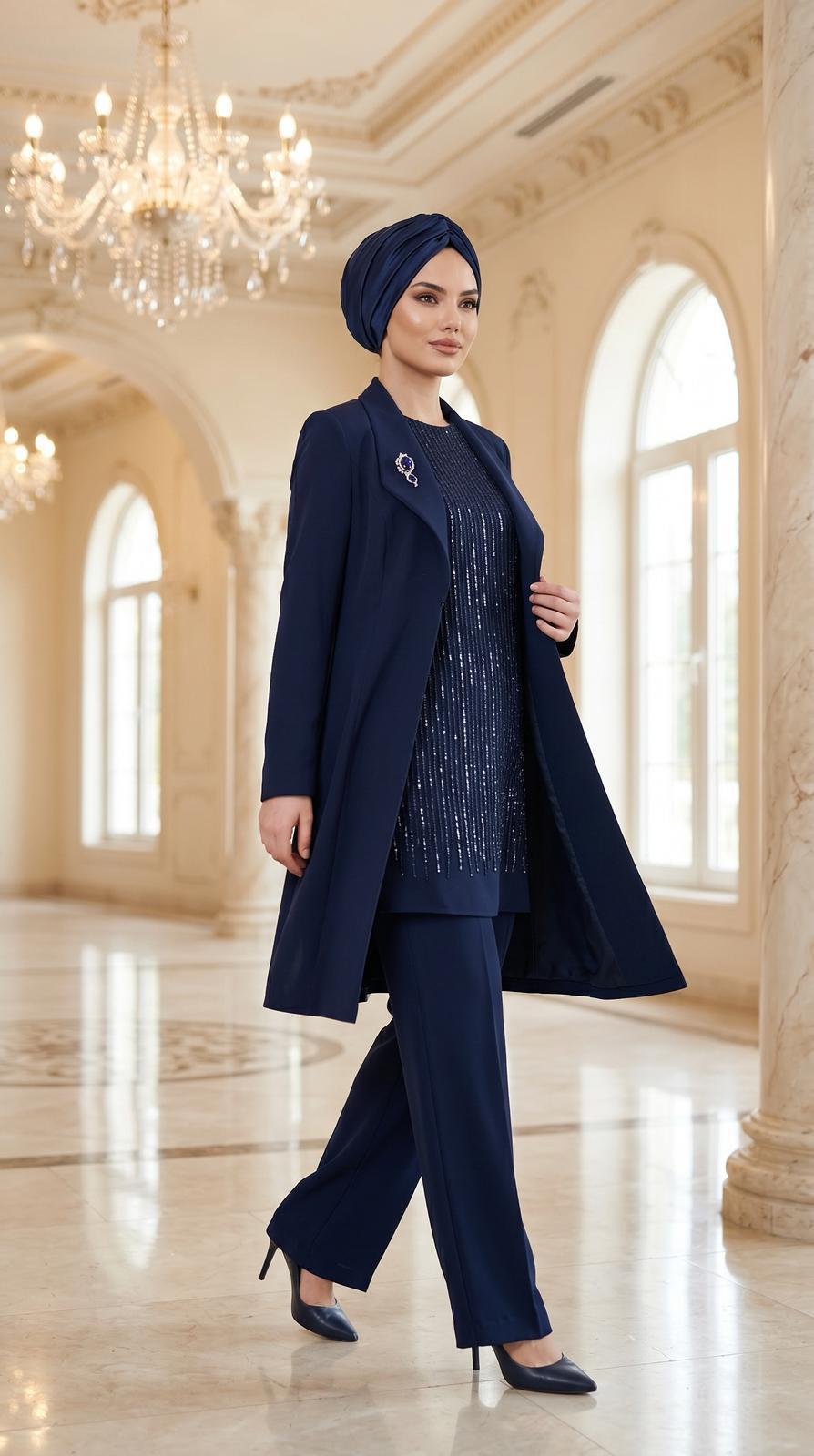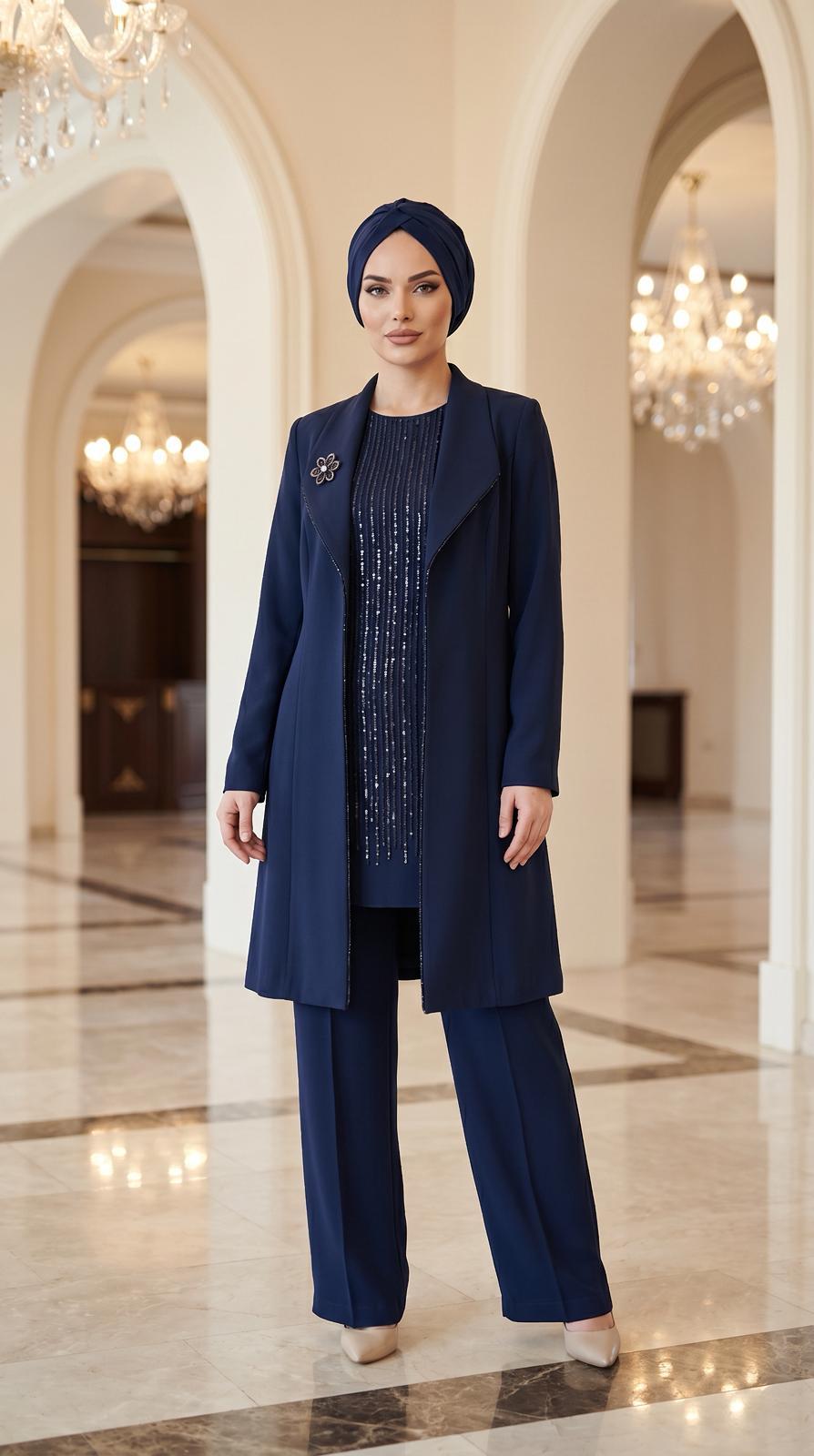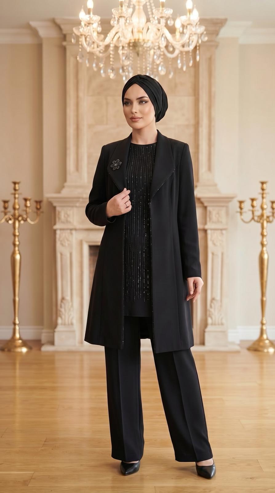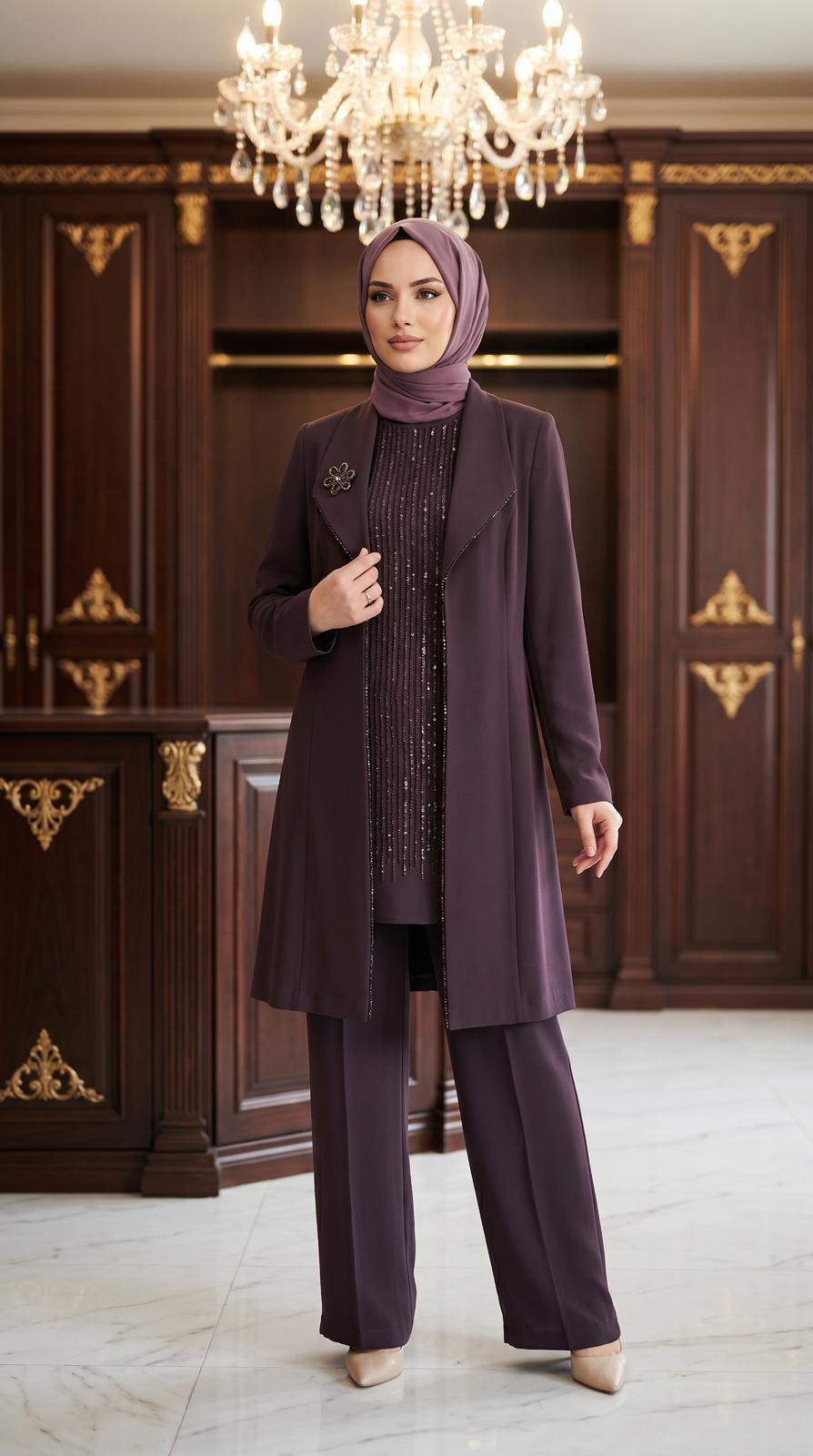 Grimiss Yaka Taş Detaylı Pantolonlu Takım-2517