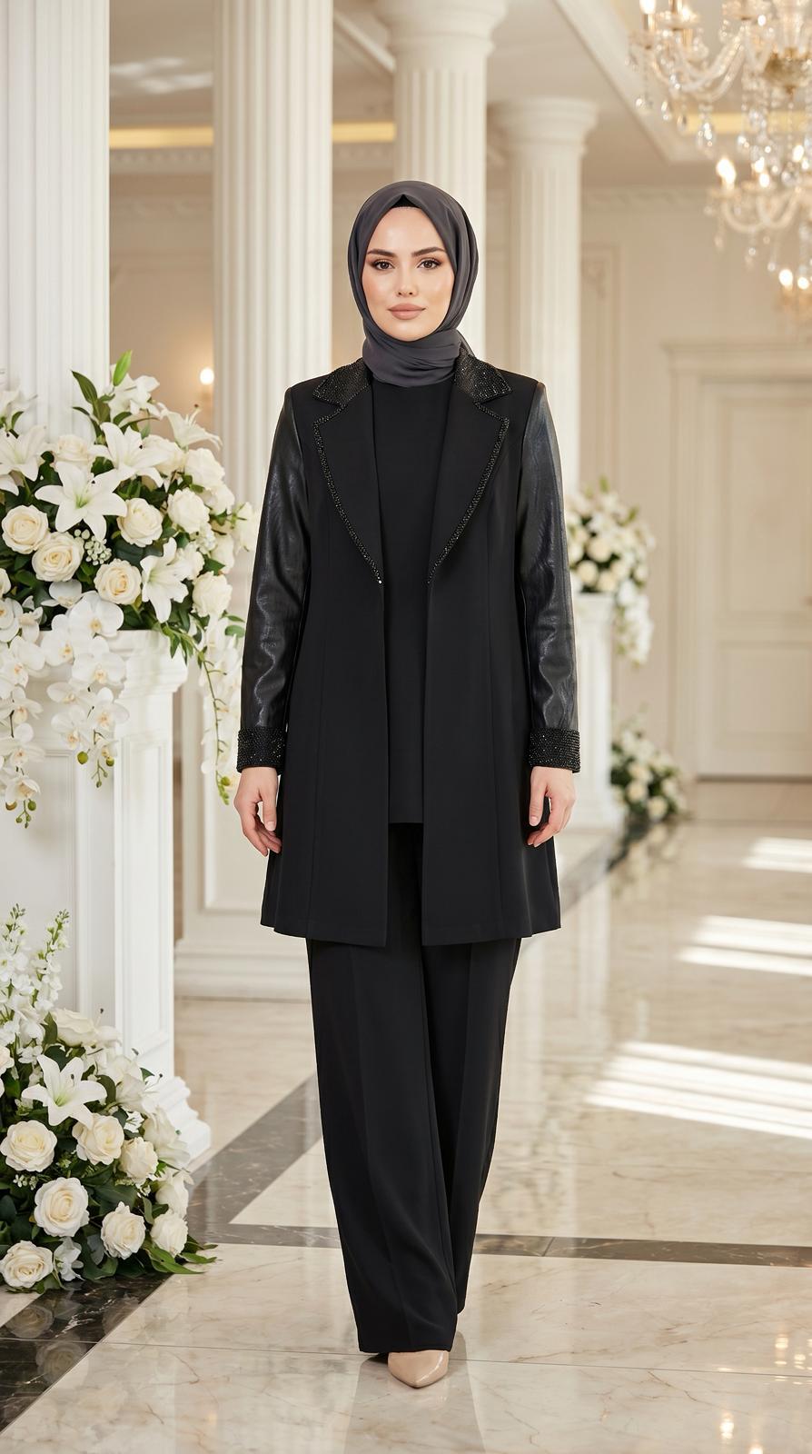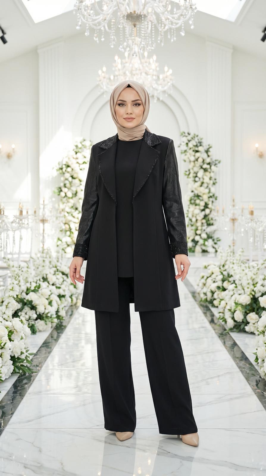 Grimiss Yaka ve Kol Taş Detaylı Pantolonlu Takım-2612
