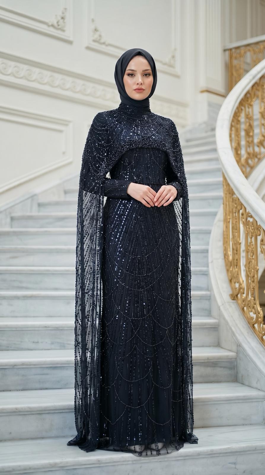 Hennin Taş Ve Pelerin Detaylı Abiye-5083