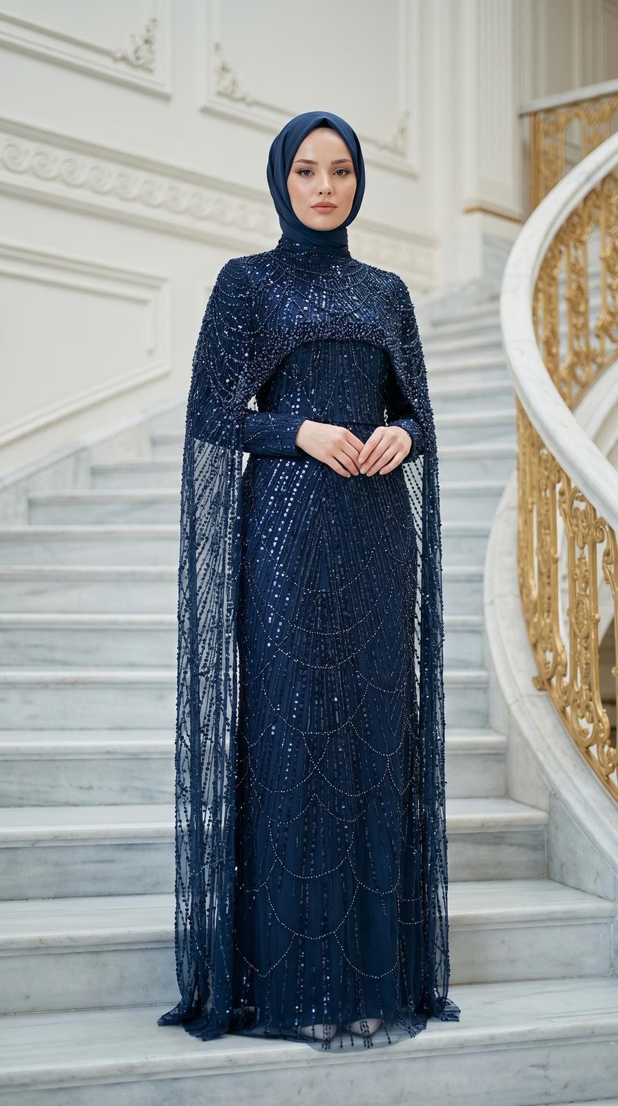- Kenzel Kolu Pelerin Detaylı Abiye ELBİSE-2033