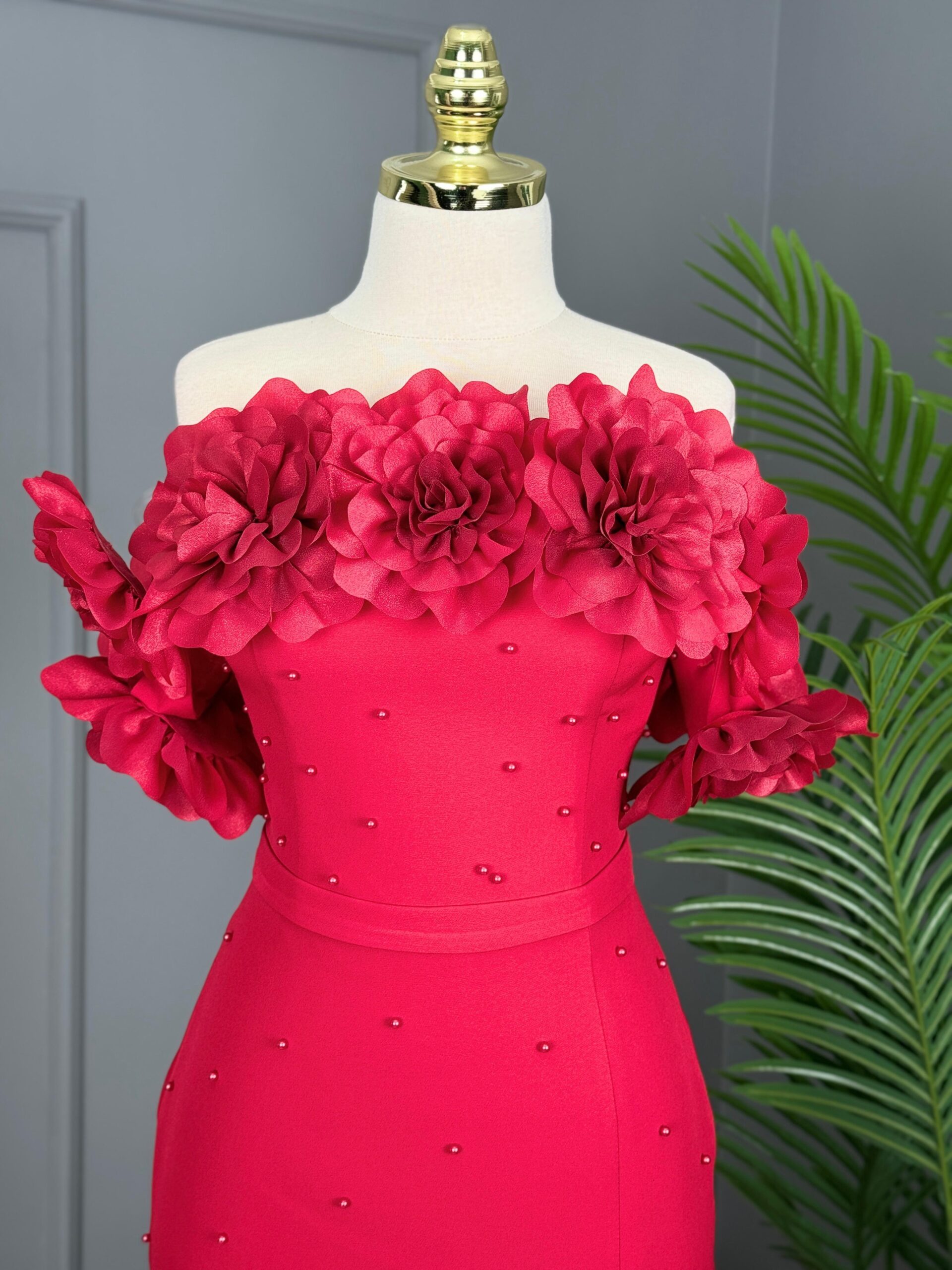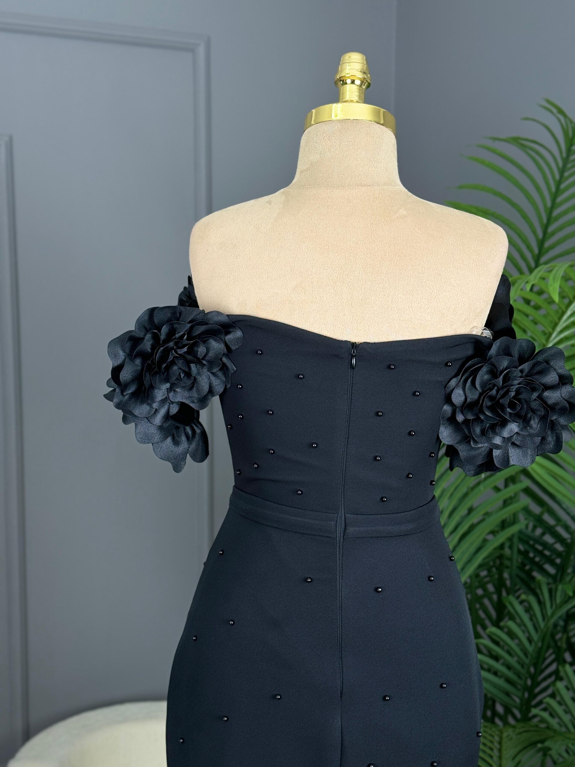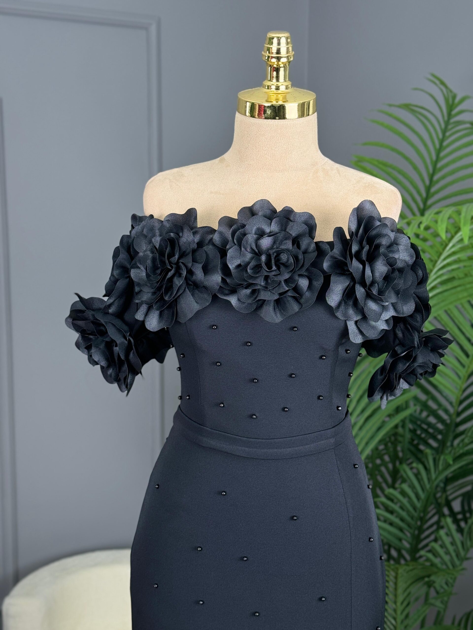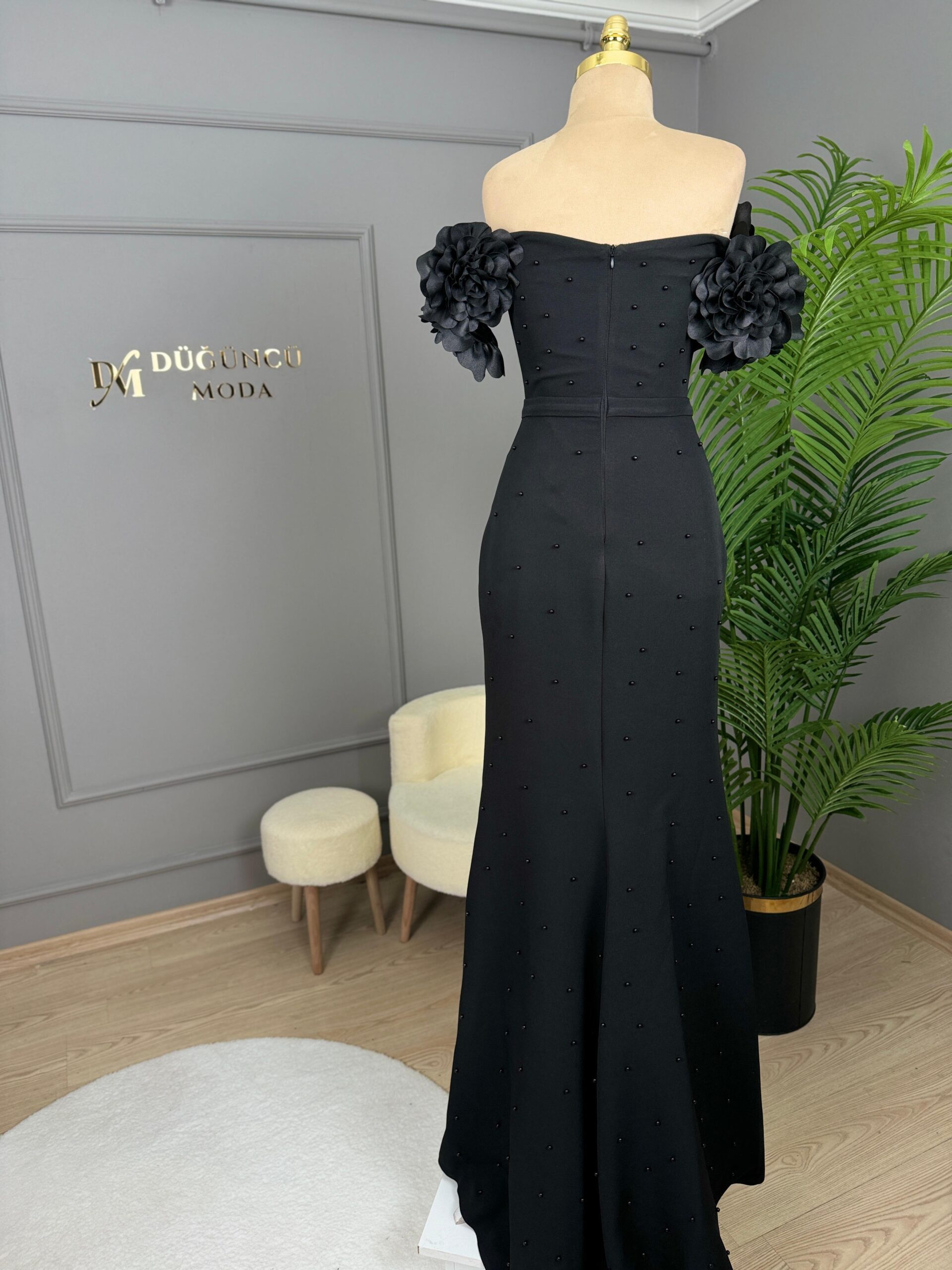 Hotcontact Yaka Çiçek Detaylı Abiye Elbise-5240