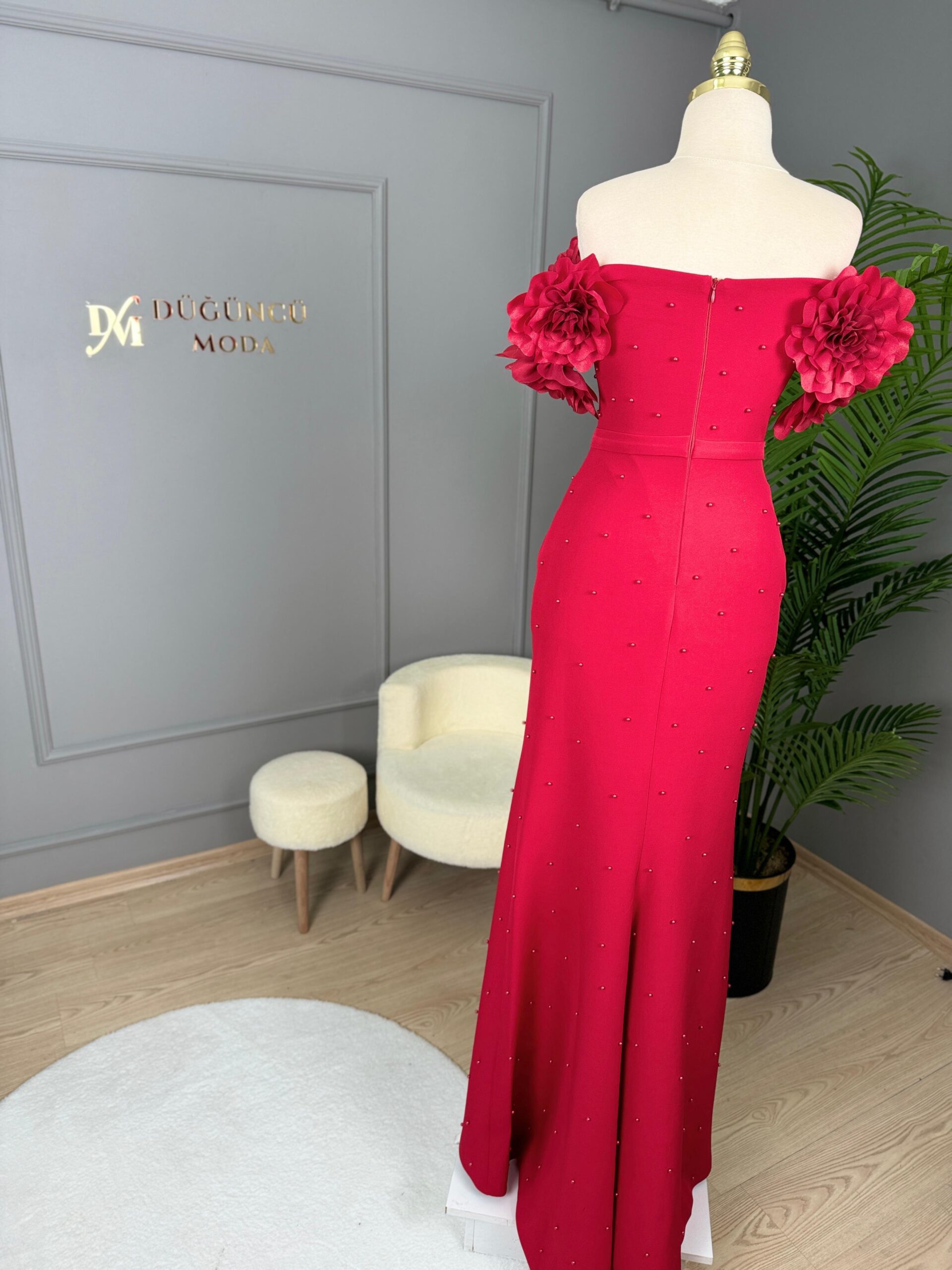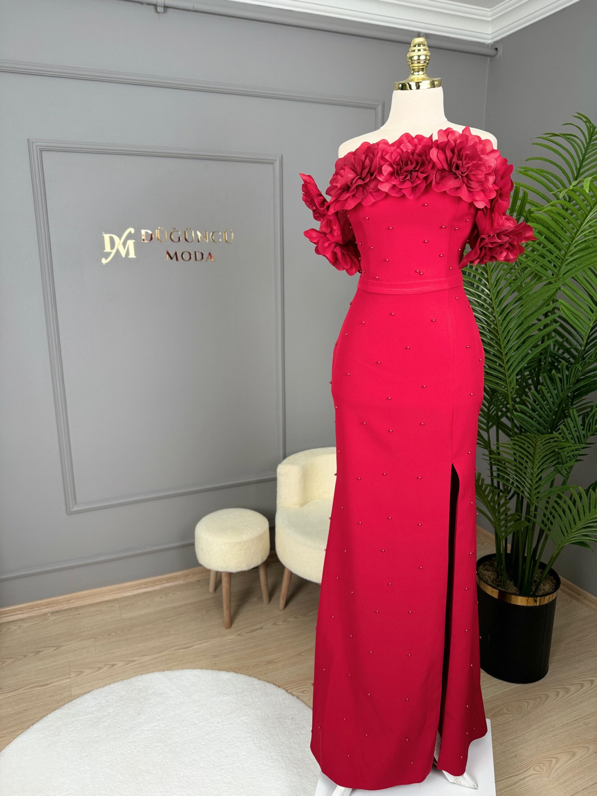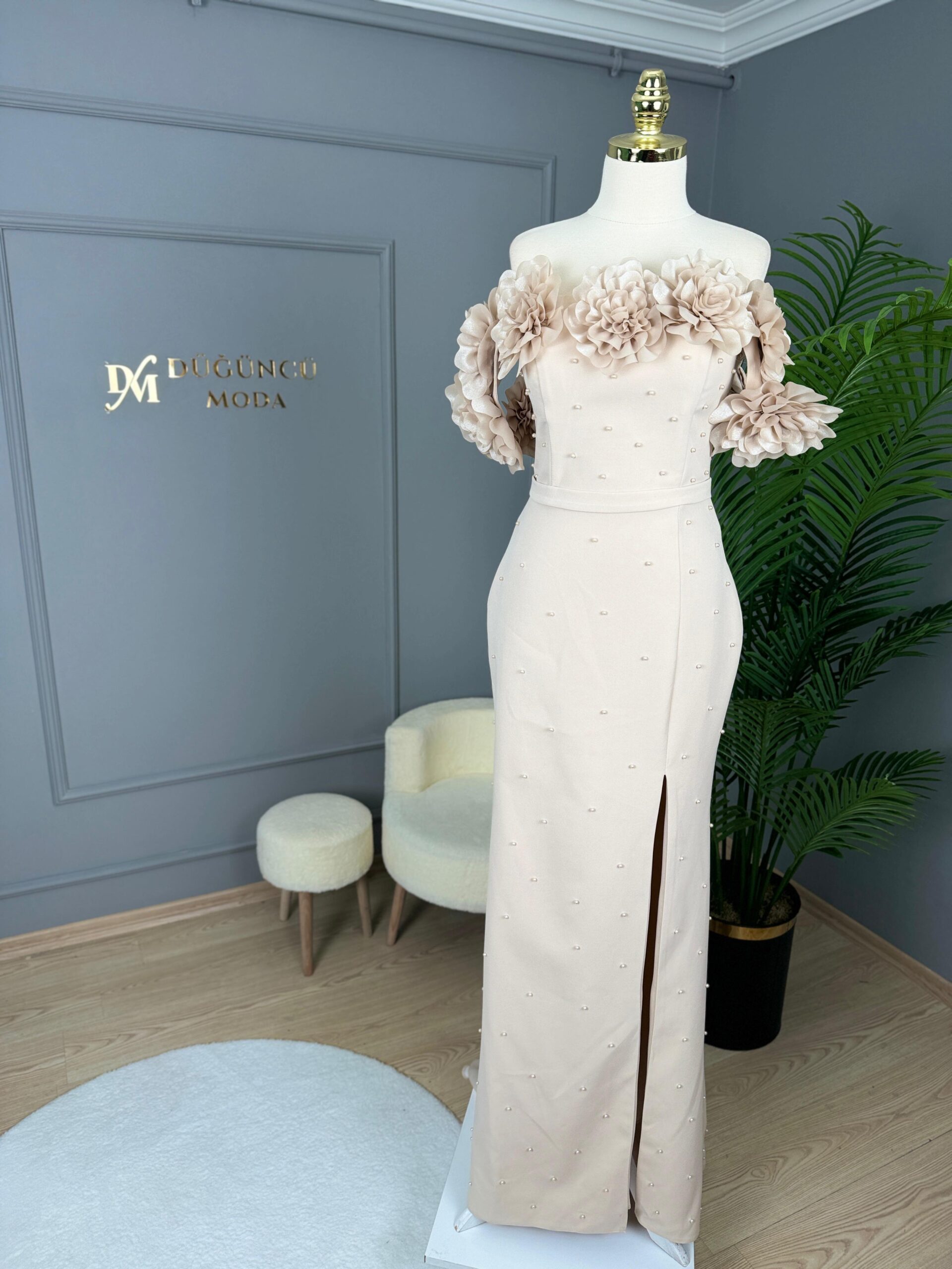 - Kenzel Kolları Otriş Detaylı Abiye Elbise-9021