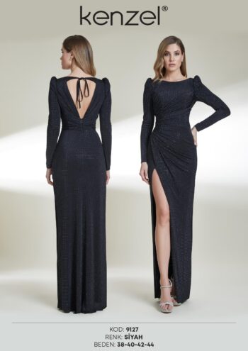 - Kenzel Otriş Detaylı Abiye Elbise-9056