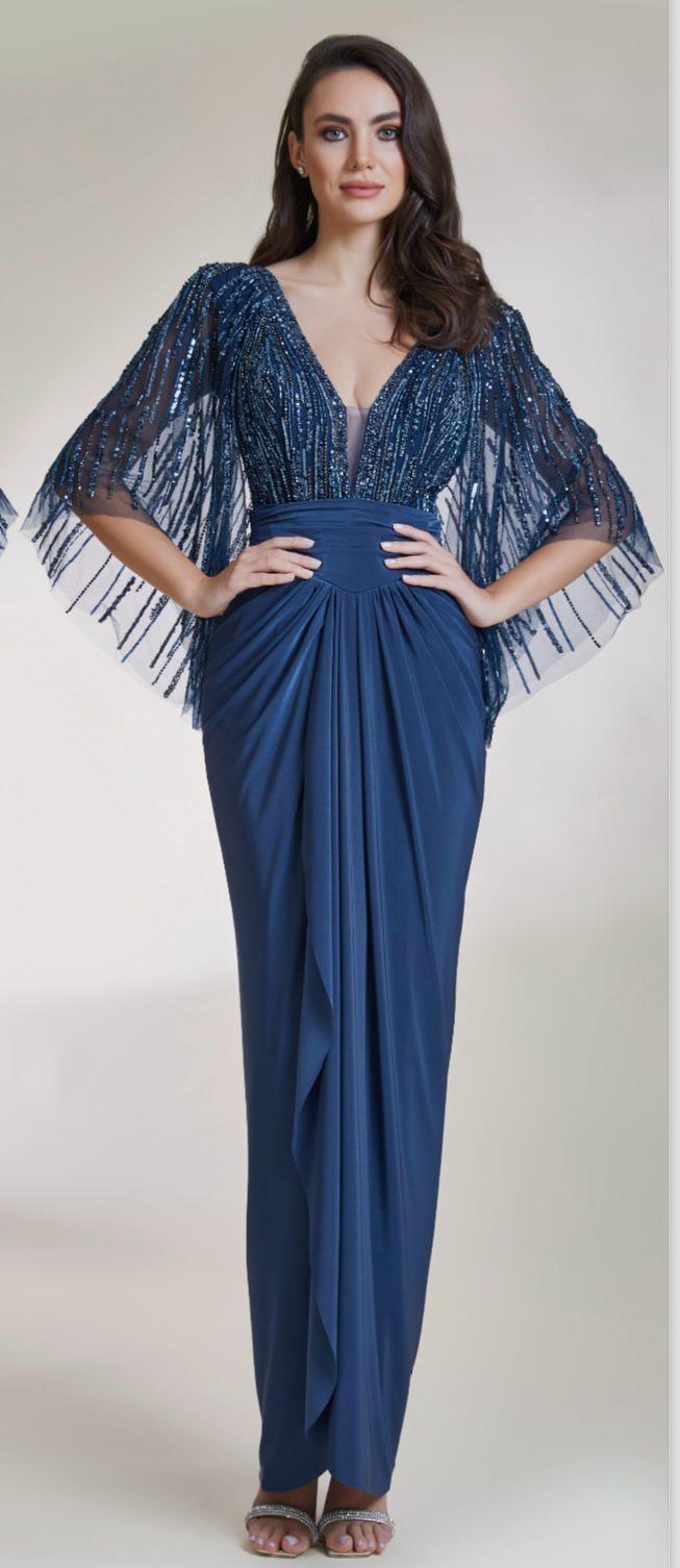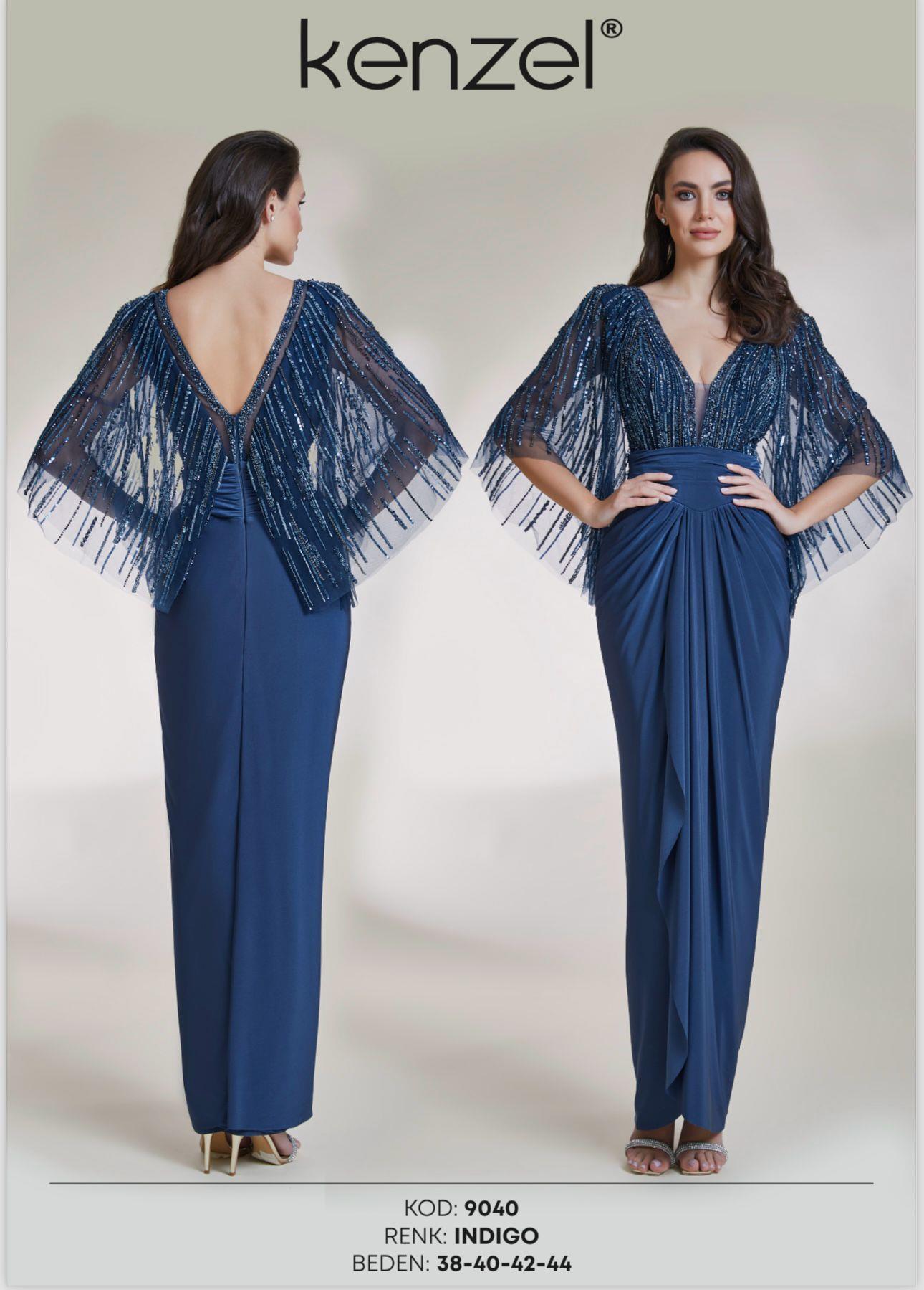 - Kenzel Kolları Otriş Detaylı Abiye Elbise-9021