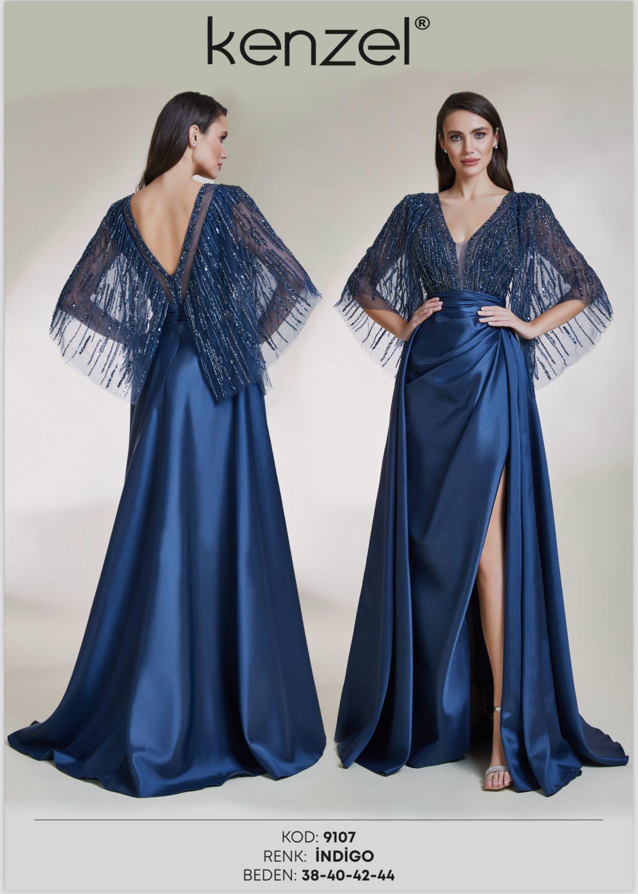 - Kenzel Pelerin Detaylı Abiye Elbise-2031