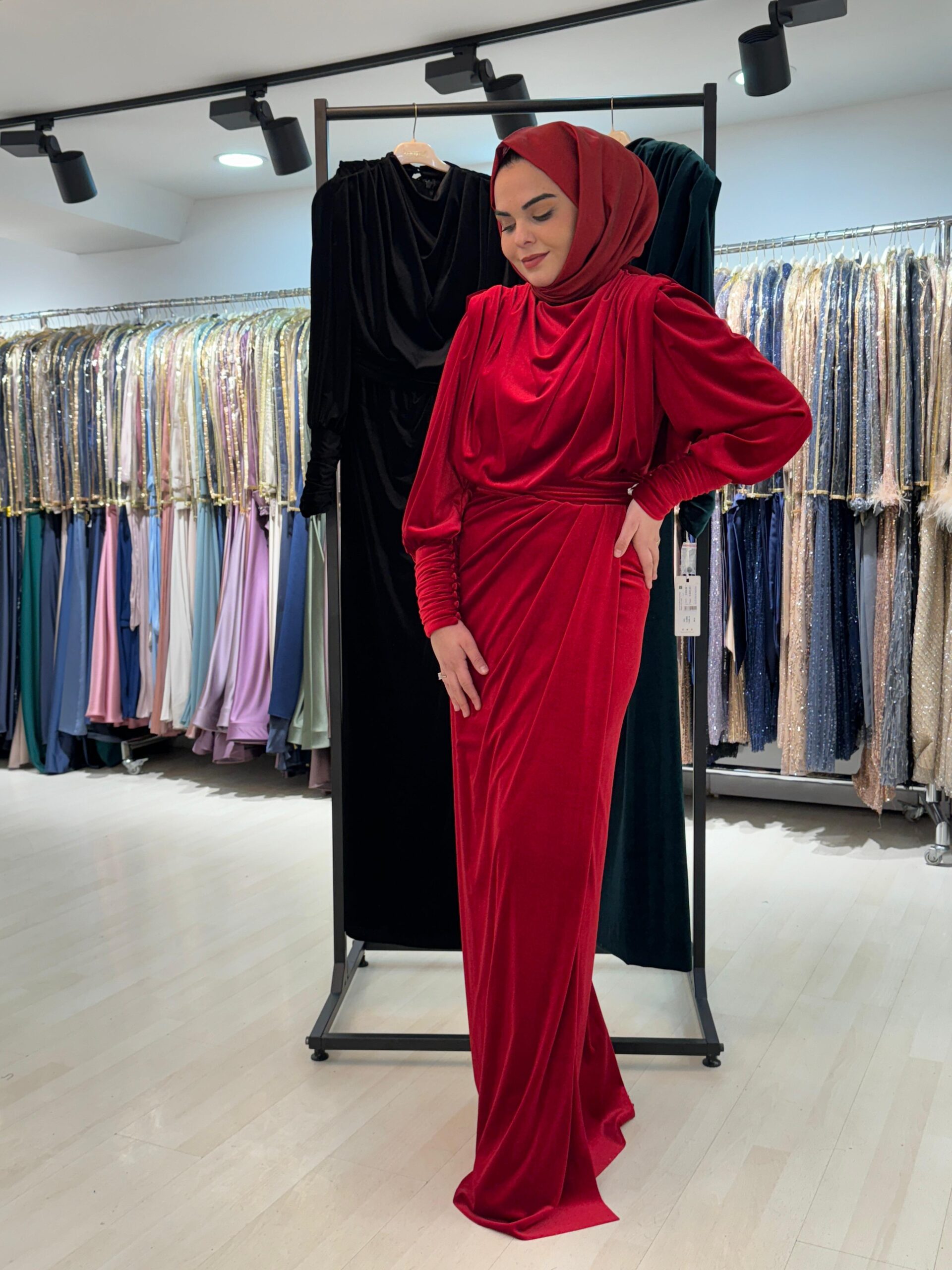 - Kenzel Kolları Otriş Detaylı Abiye Elbise-9021