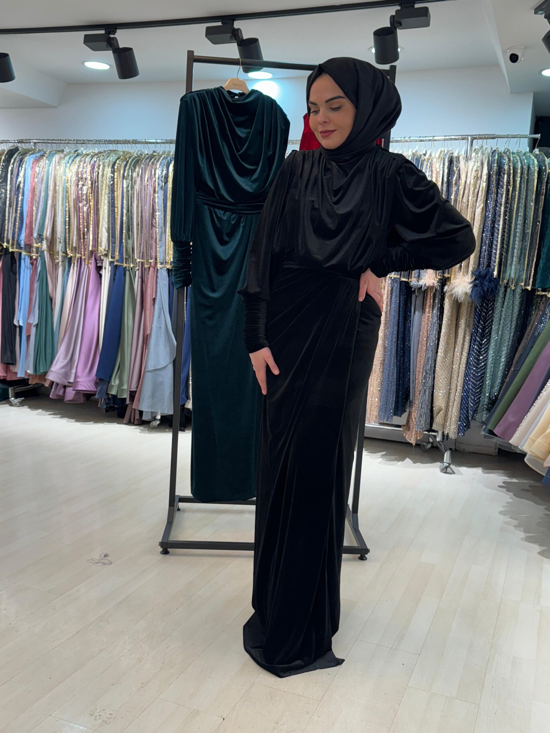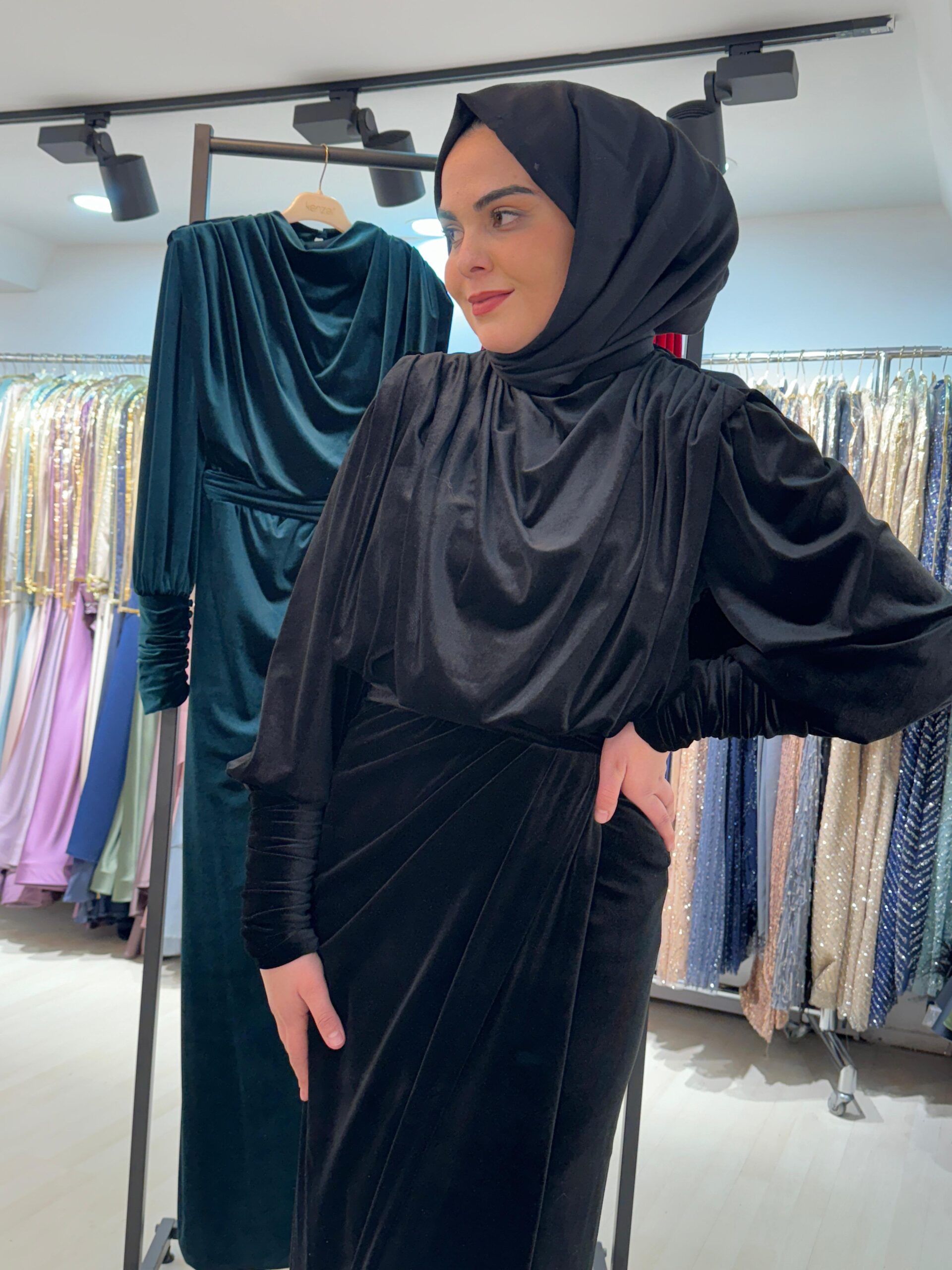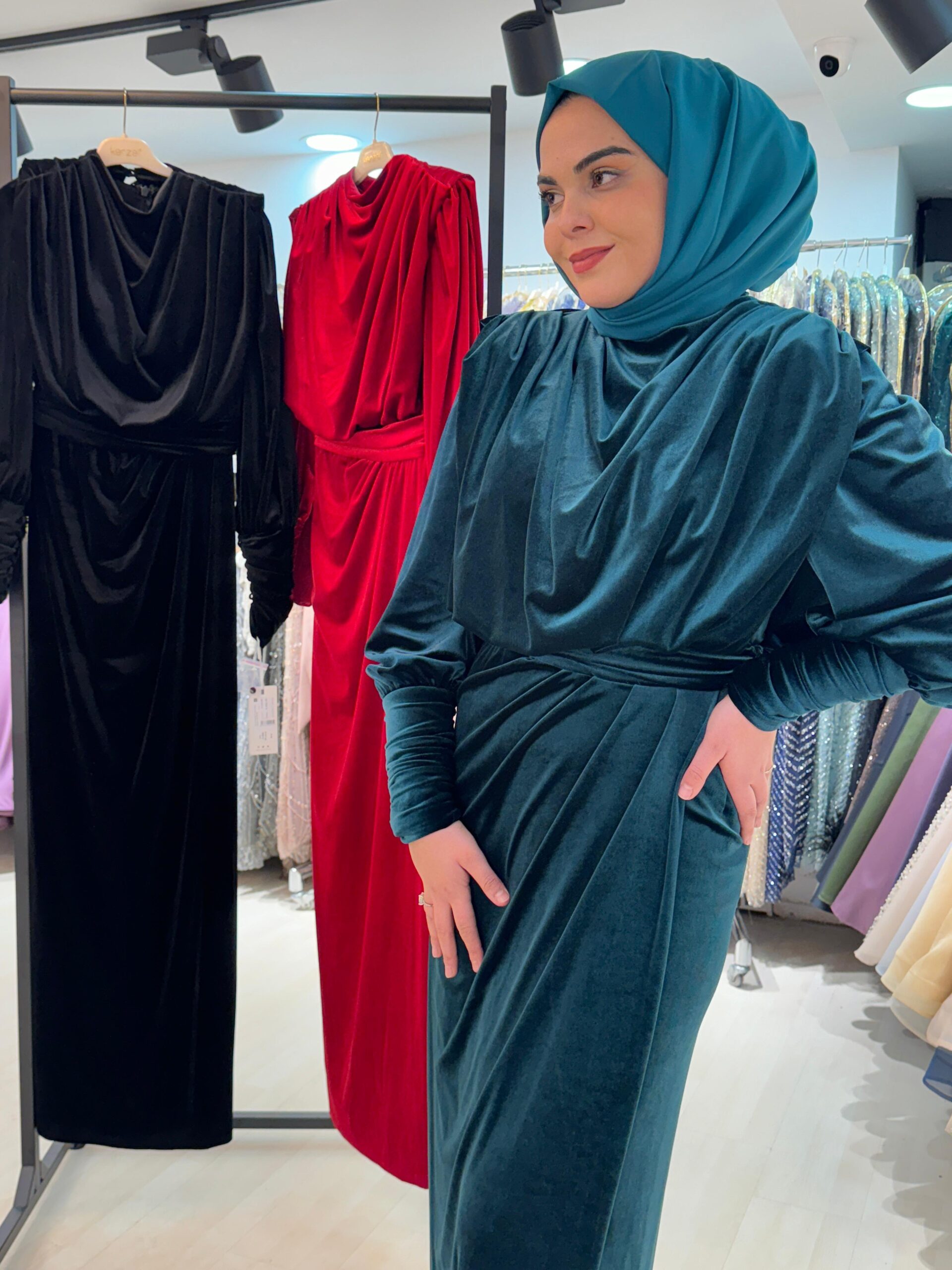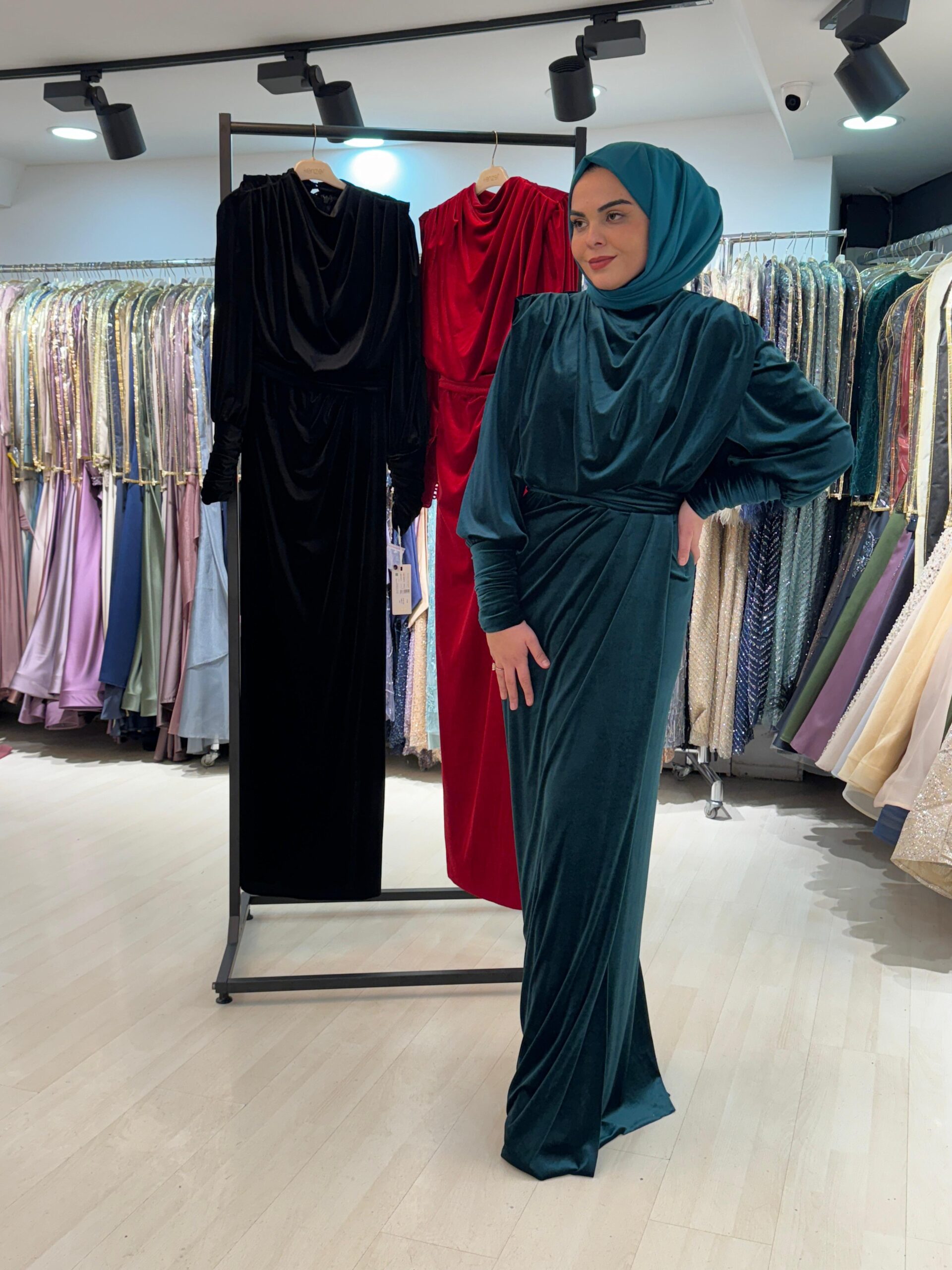 Kenzel Kadife Kumaş Abiye Elbise-1313