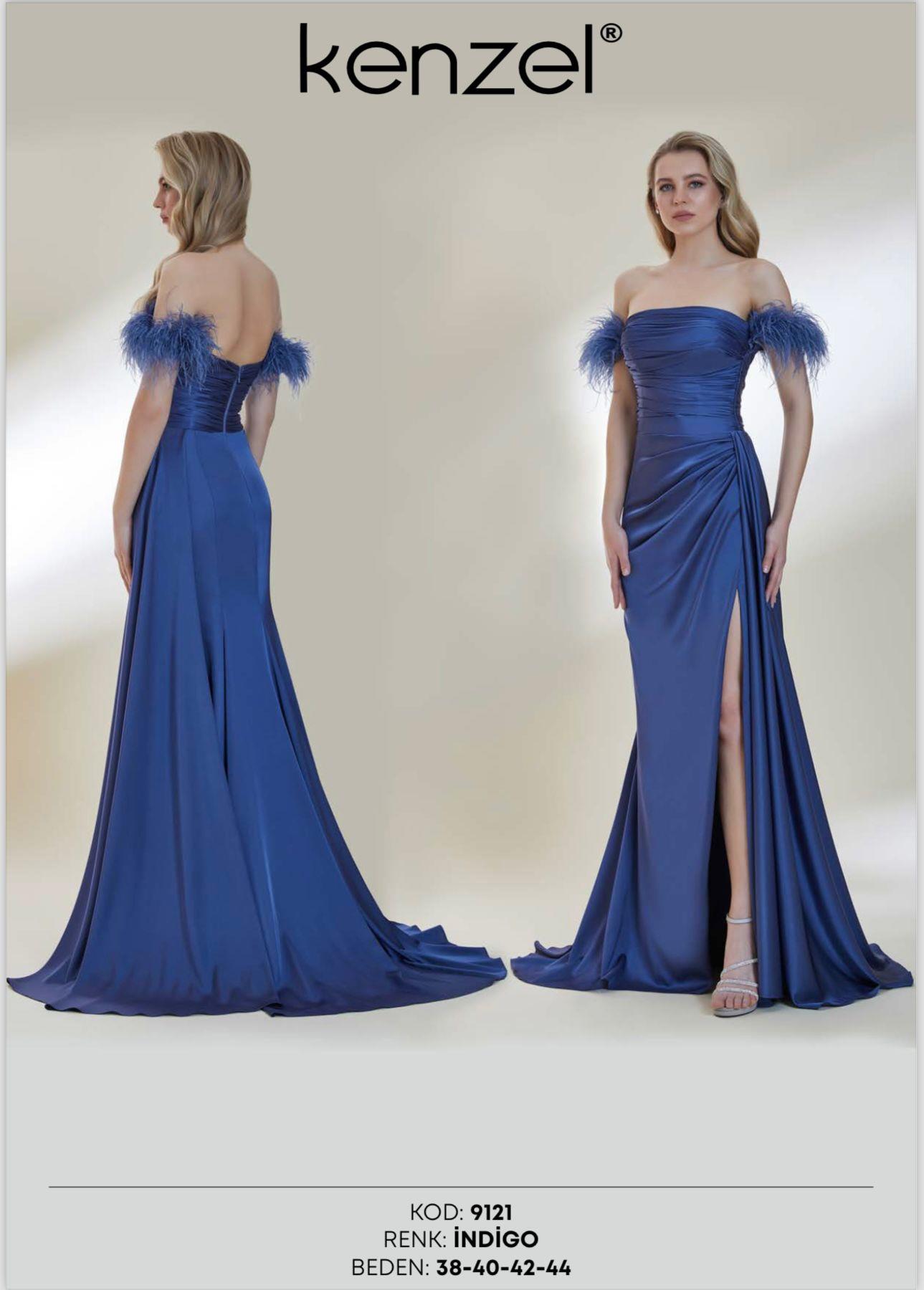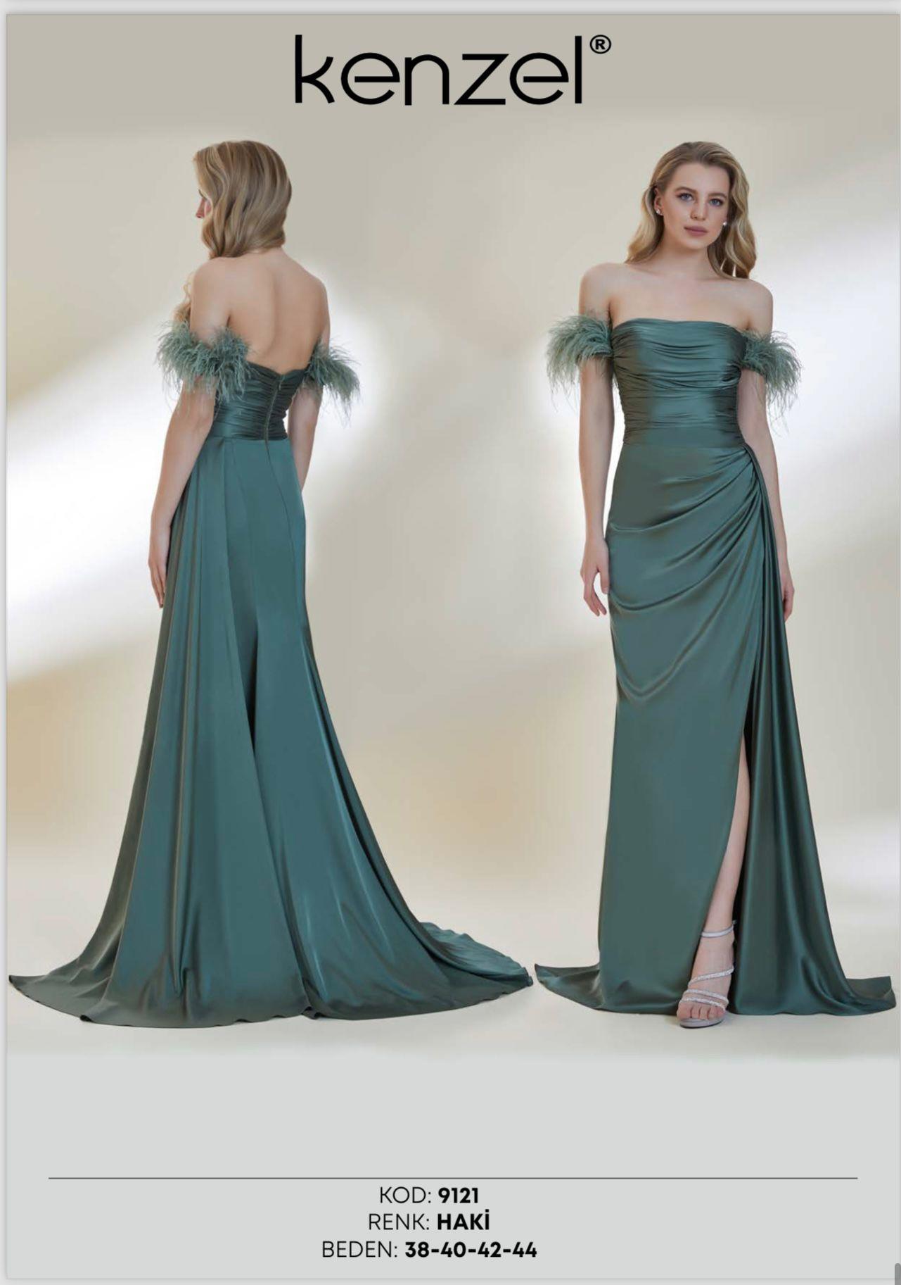 - Kenzel Kolları Otriş Detaylı Abiye Elbise-9021