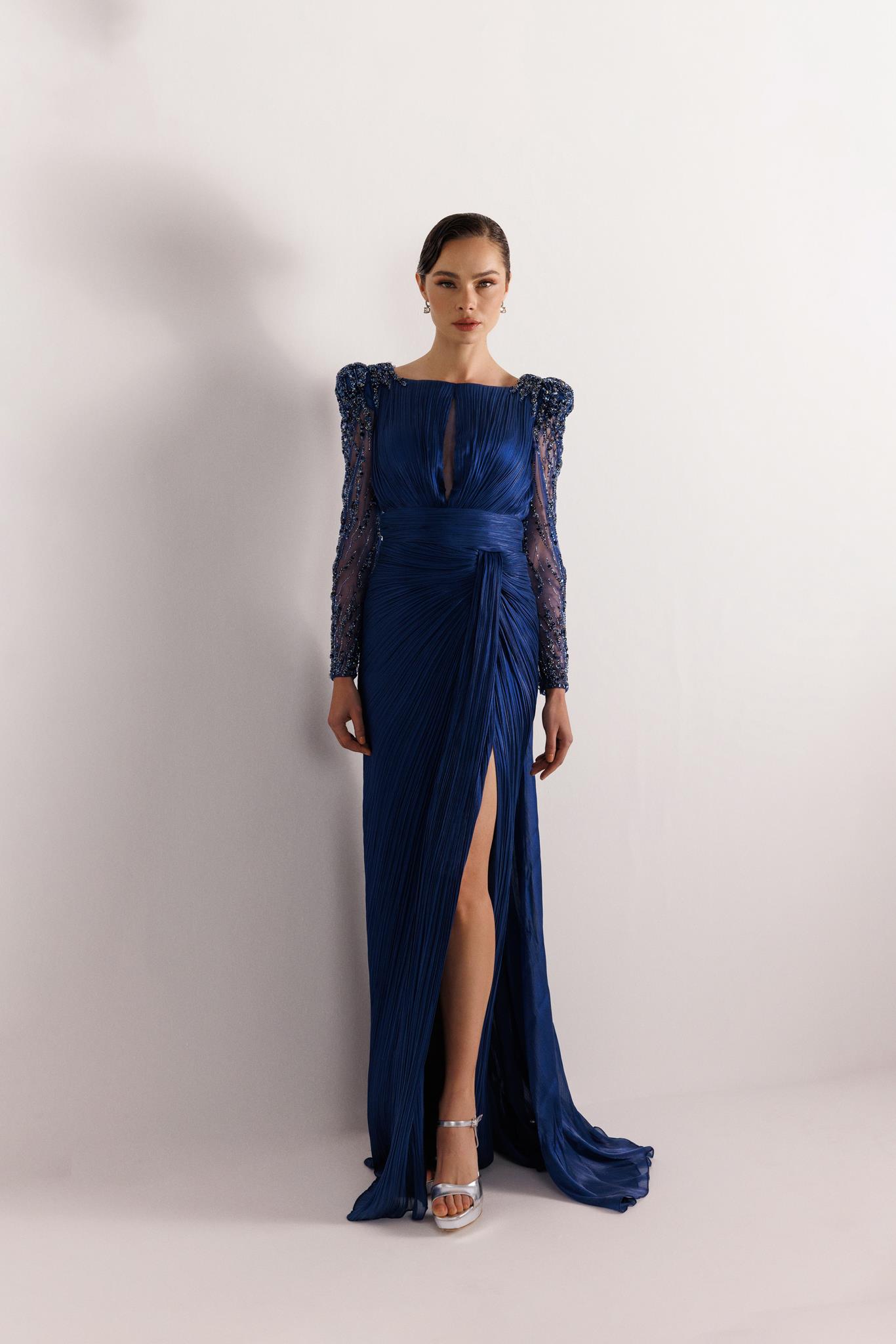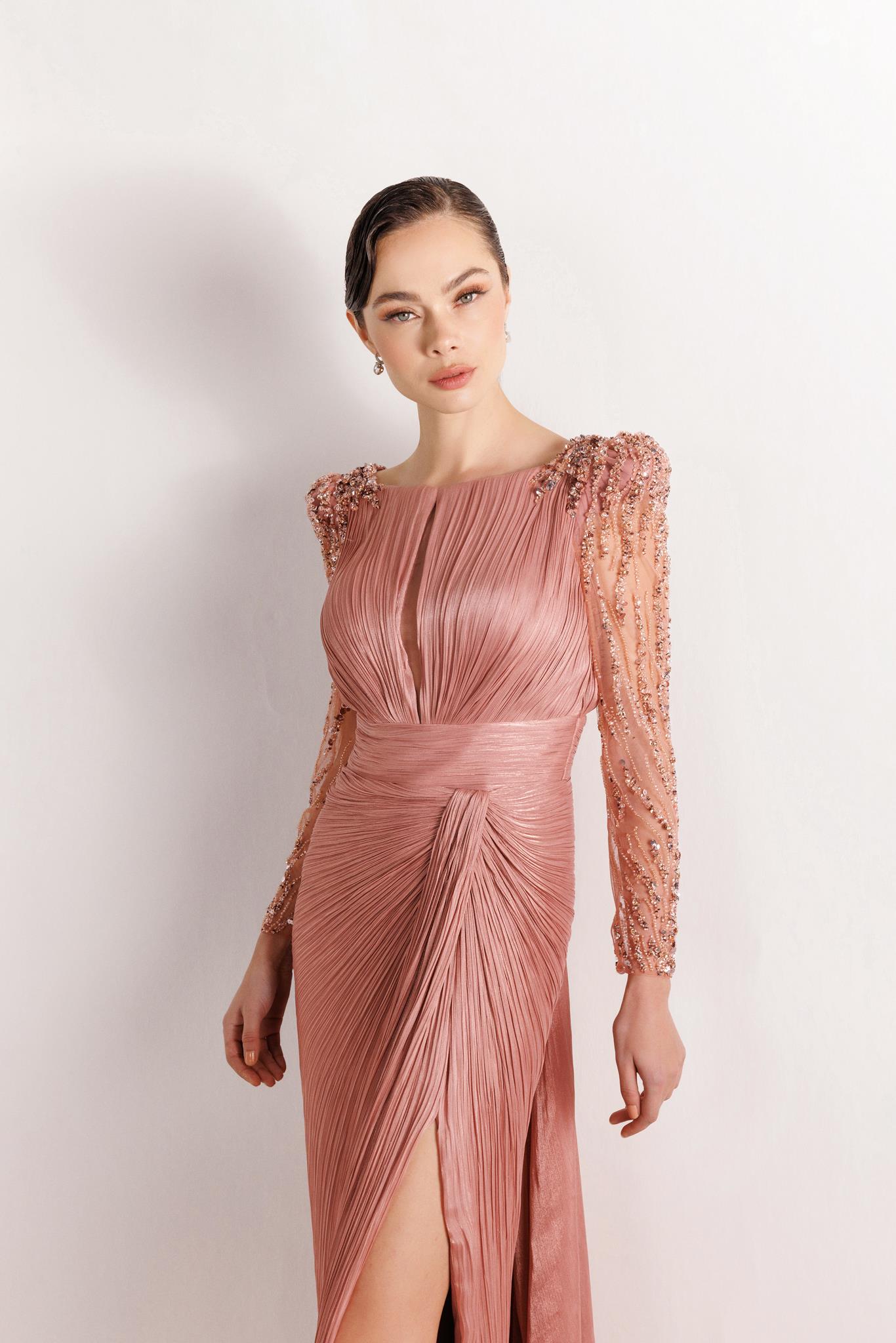 - Kenzel Kolları Otriş Detaylı Abiye Elbise-9021