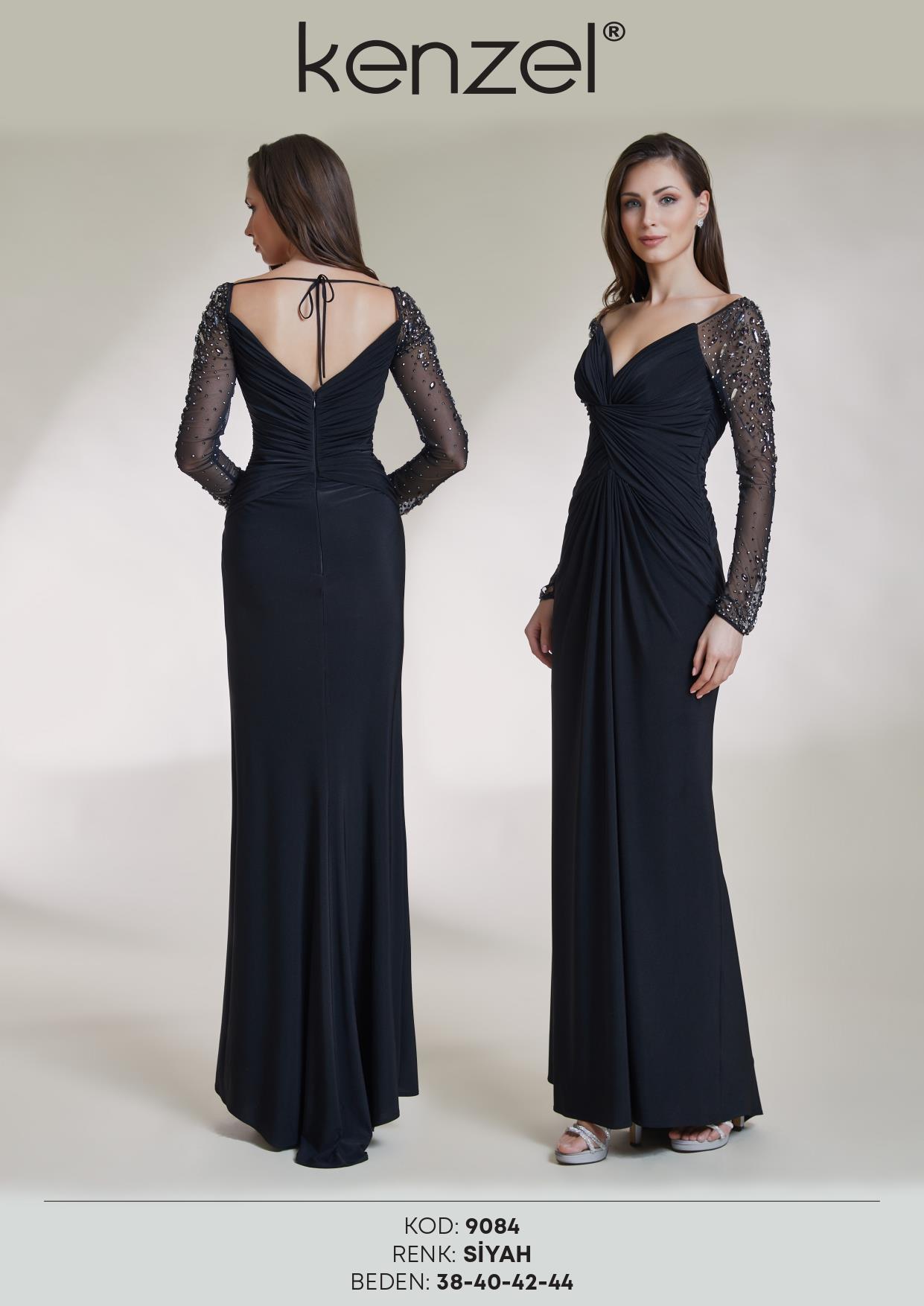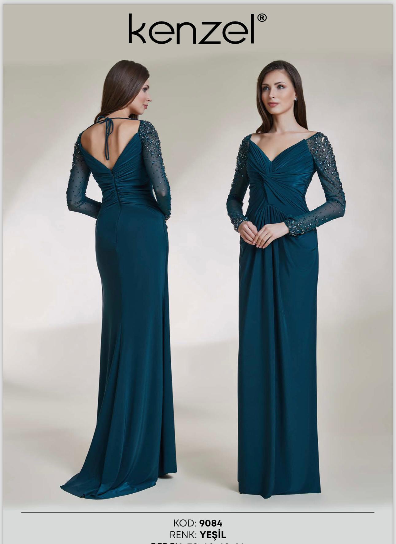 - Kenzel Kolları Otriş Detaylı Abiye Elbise-9021