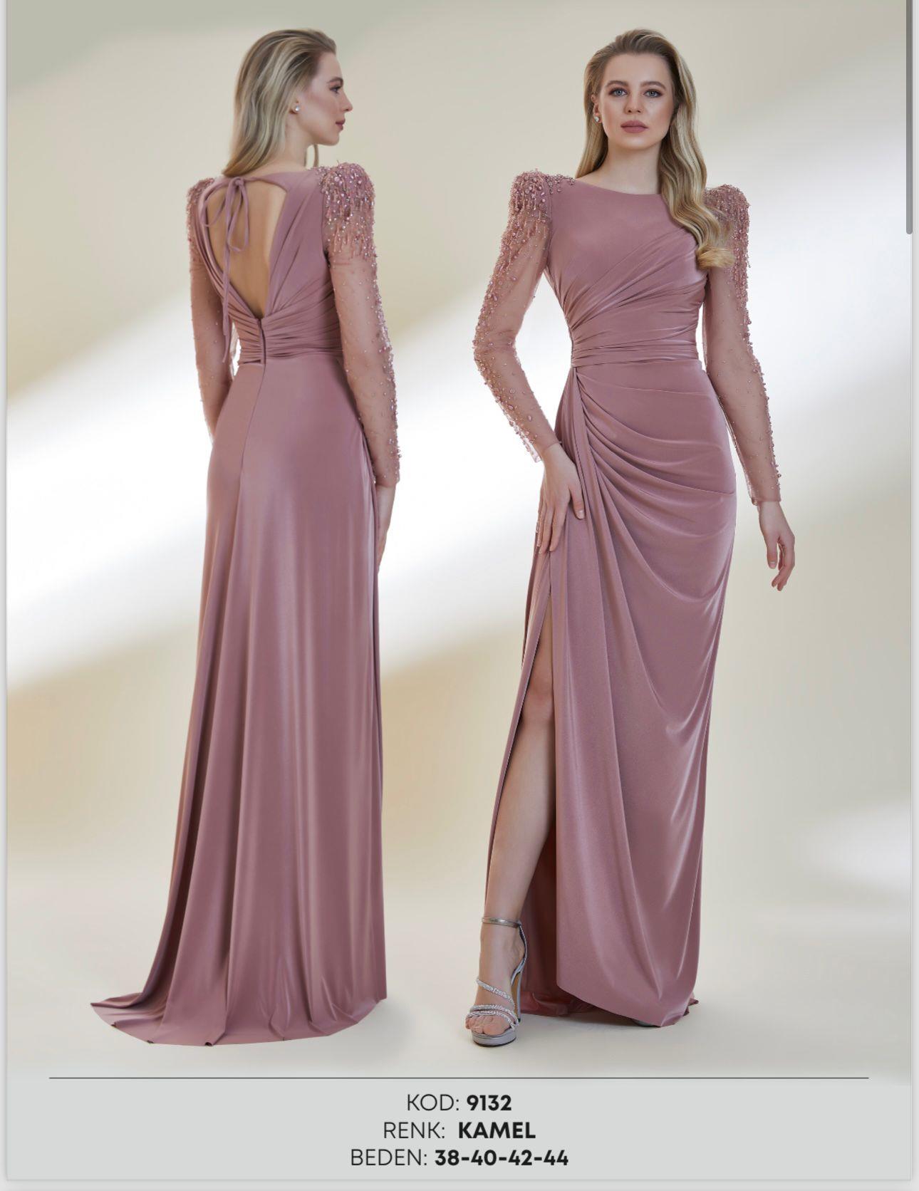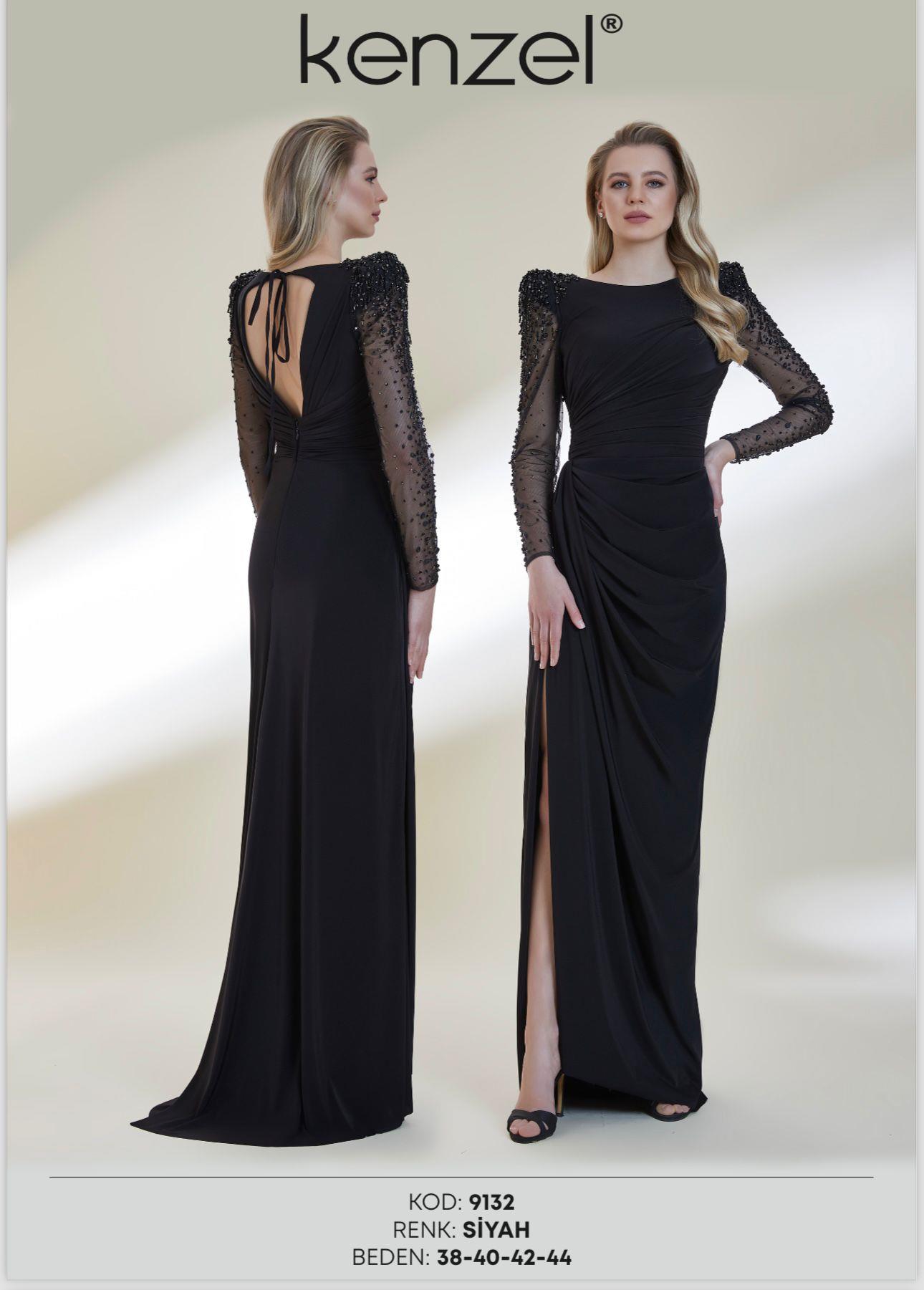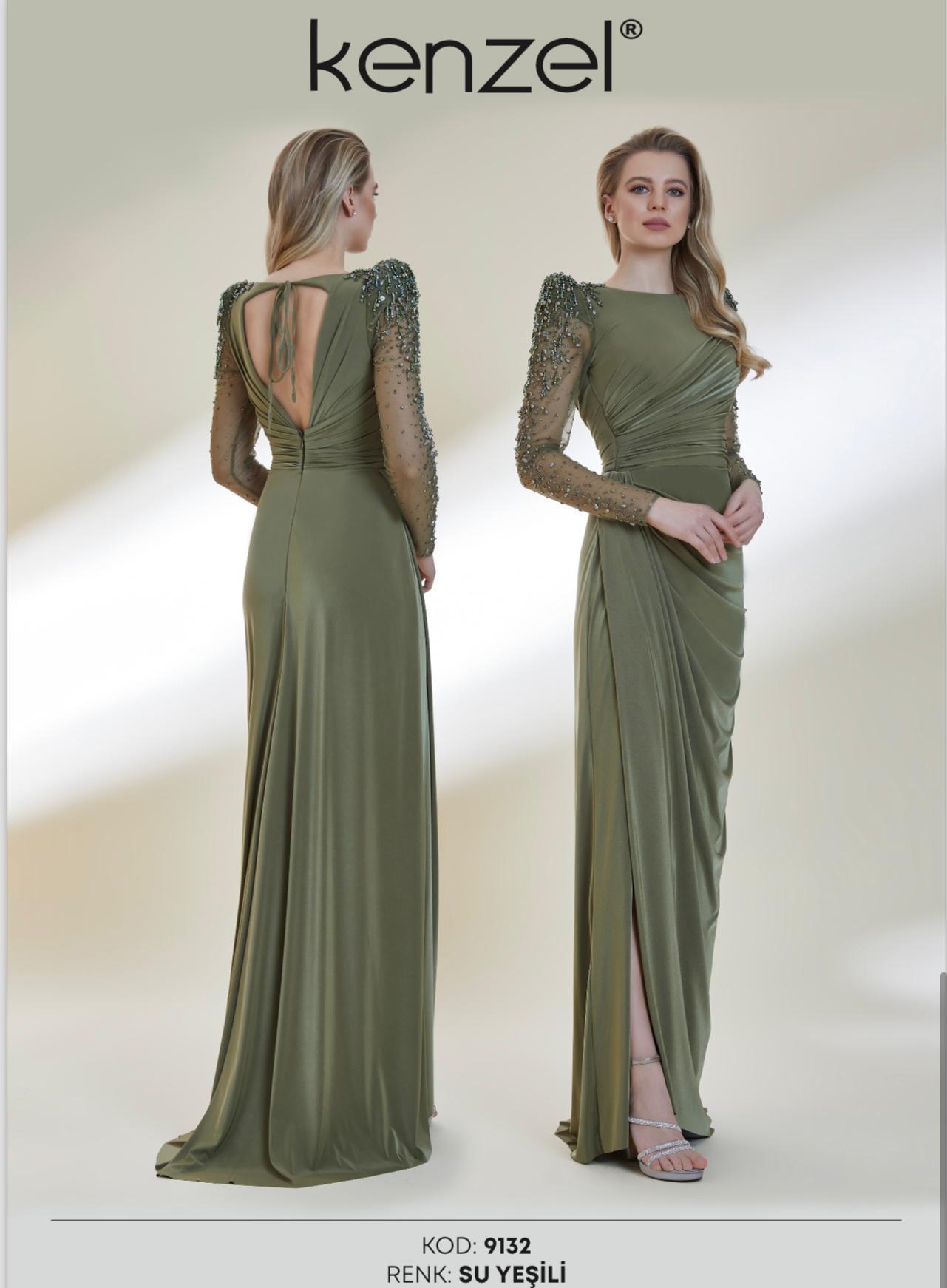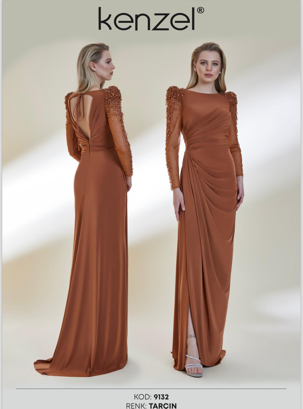 - Kenzel Kolları Otriş Detaylı Abiye Elbise-9021