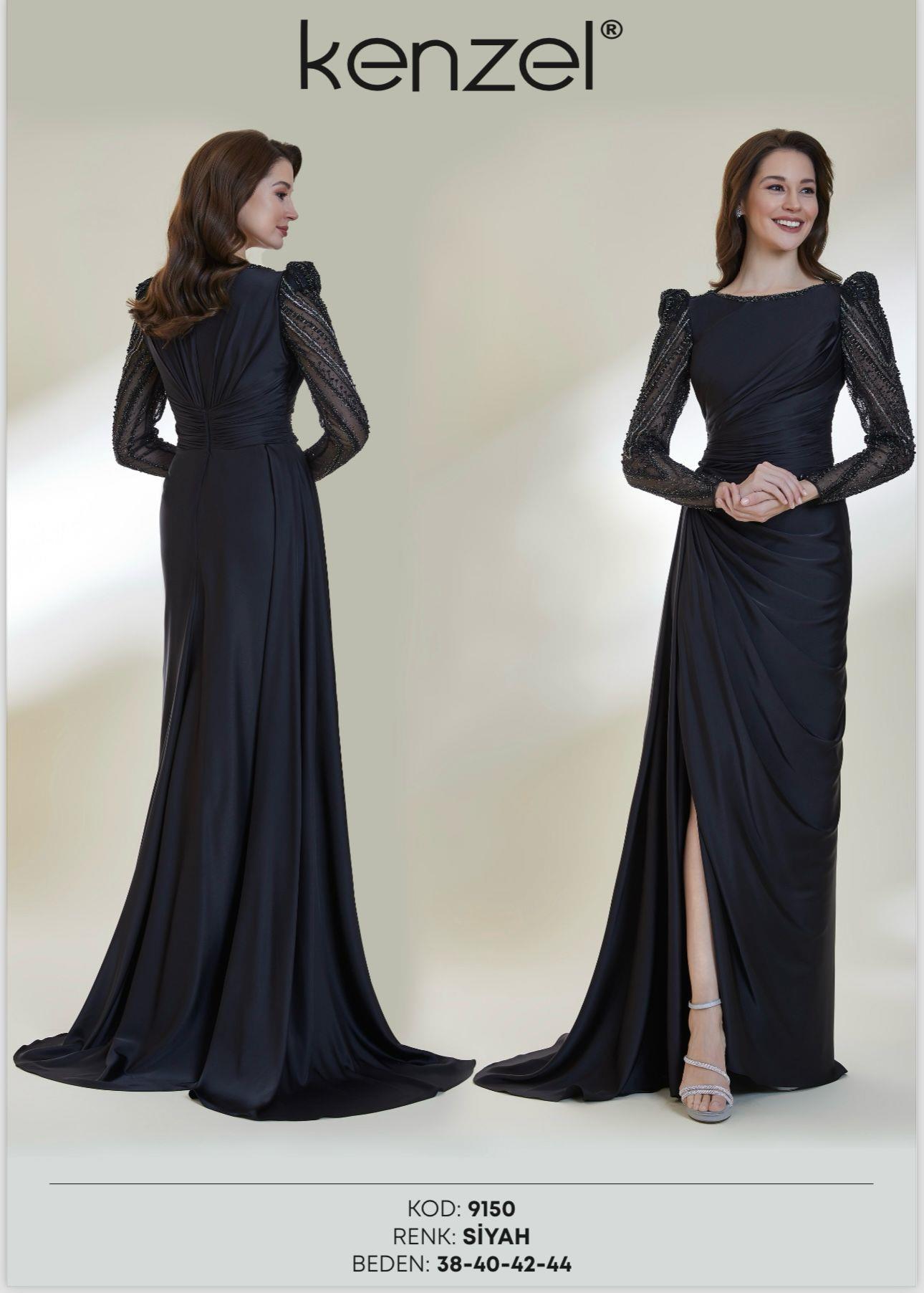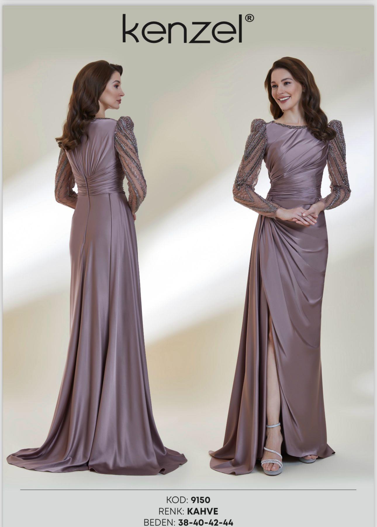 - Kenzel Kolları Otriş Detaylı Abiye Elbise-9021