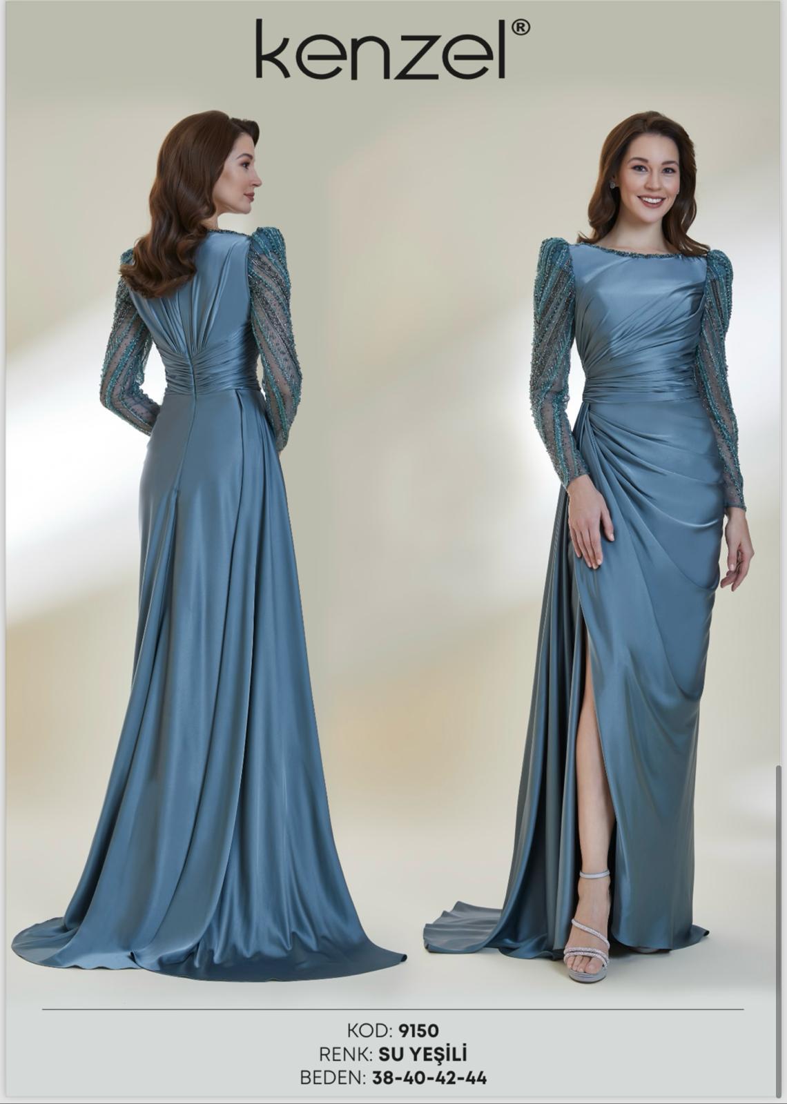 - Kenzel Kolları Otriş Detaylı Abiye Elbise-9021