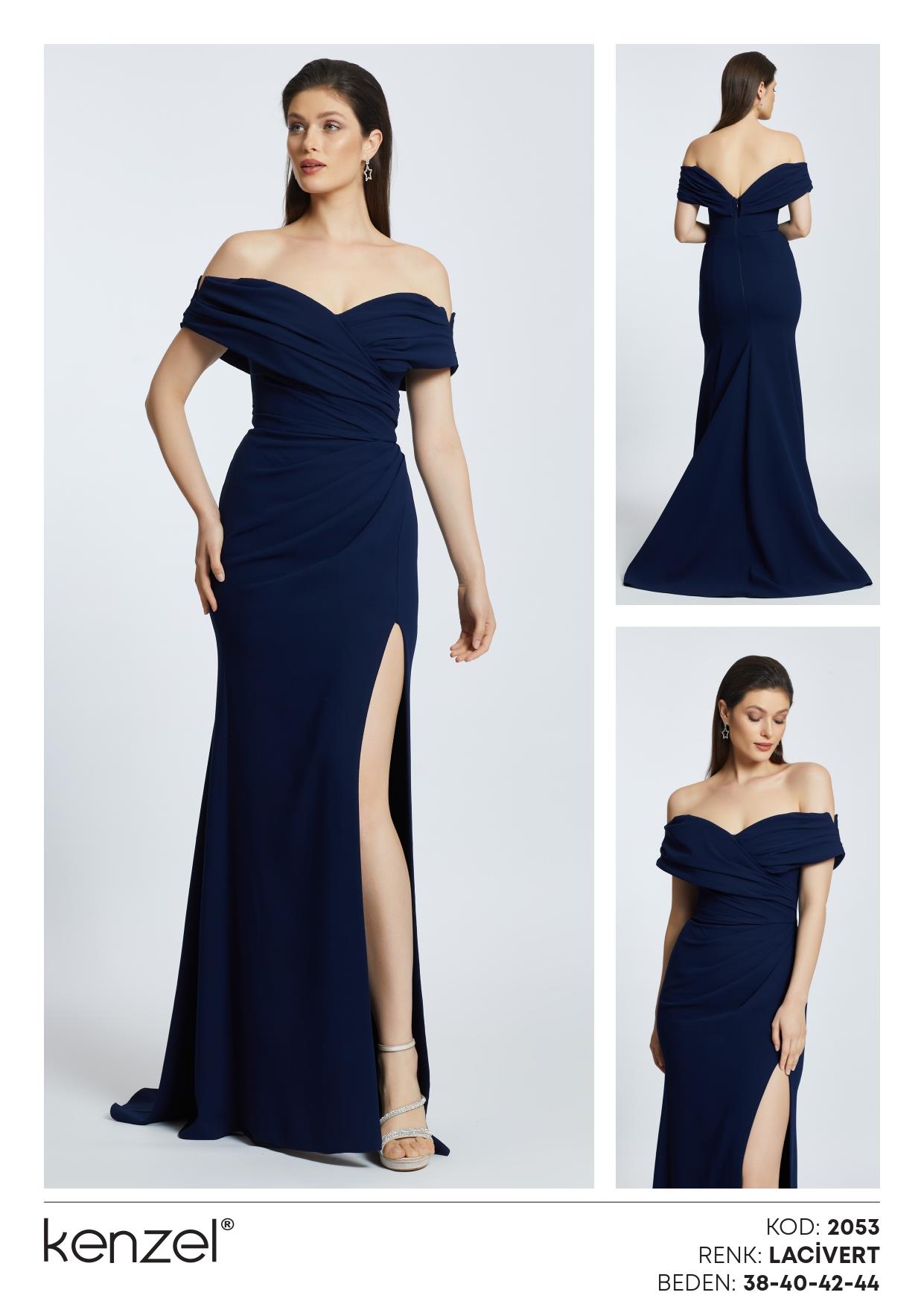 - Kenzel Omuz Detaylı Abiye Elbise-2077