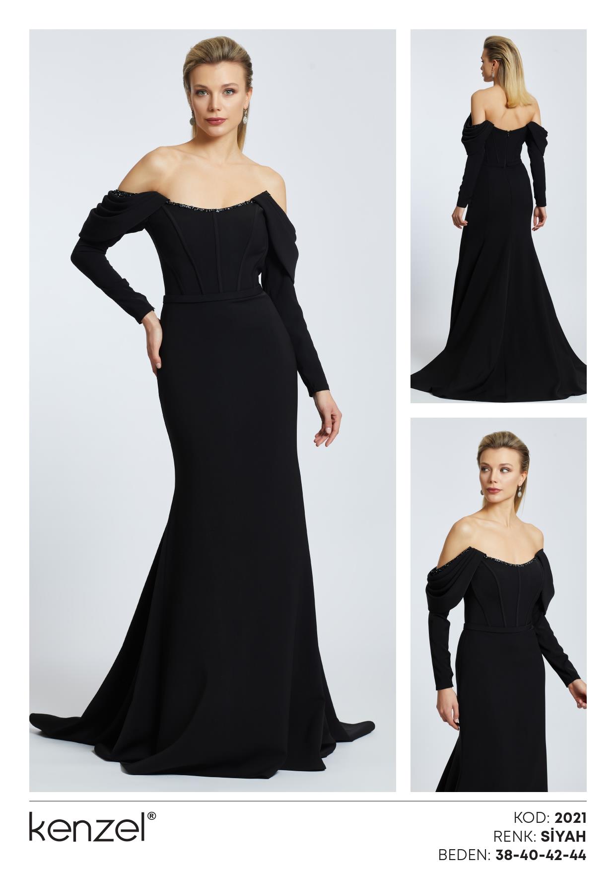 Kenzel Omuz Detaylı Abiye Elbise-2021