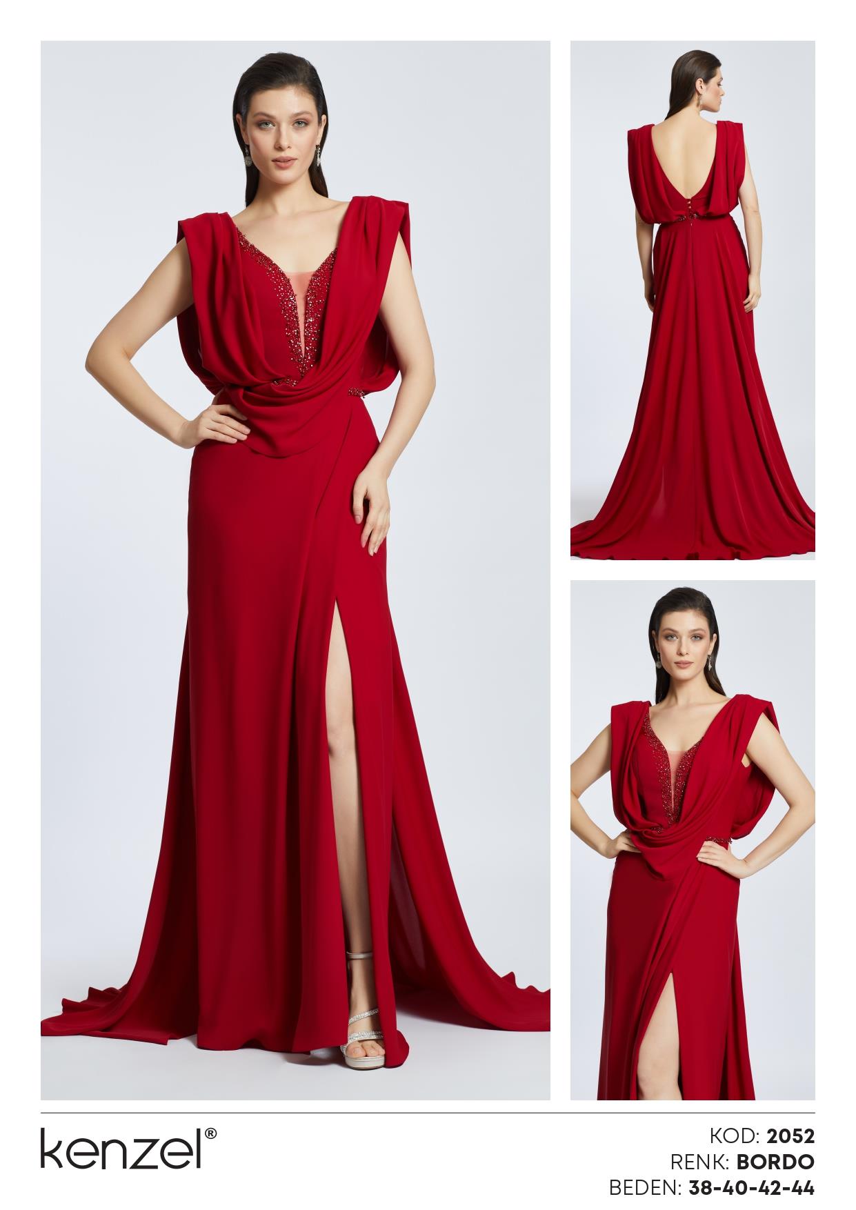 - Kenzel Otriş Detaylı Abiye Elbise-9056