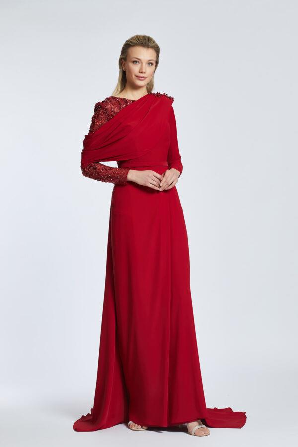 - Kenzel Kolları Otriş Detaylı Abiye Elbise-9021