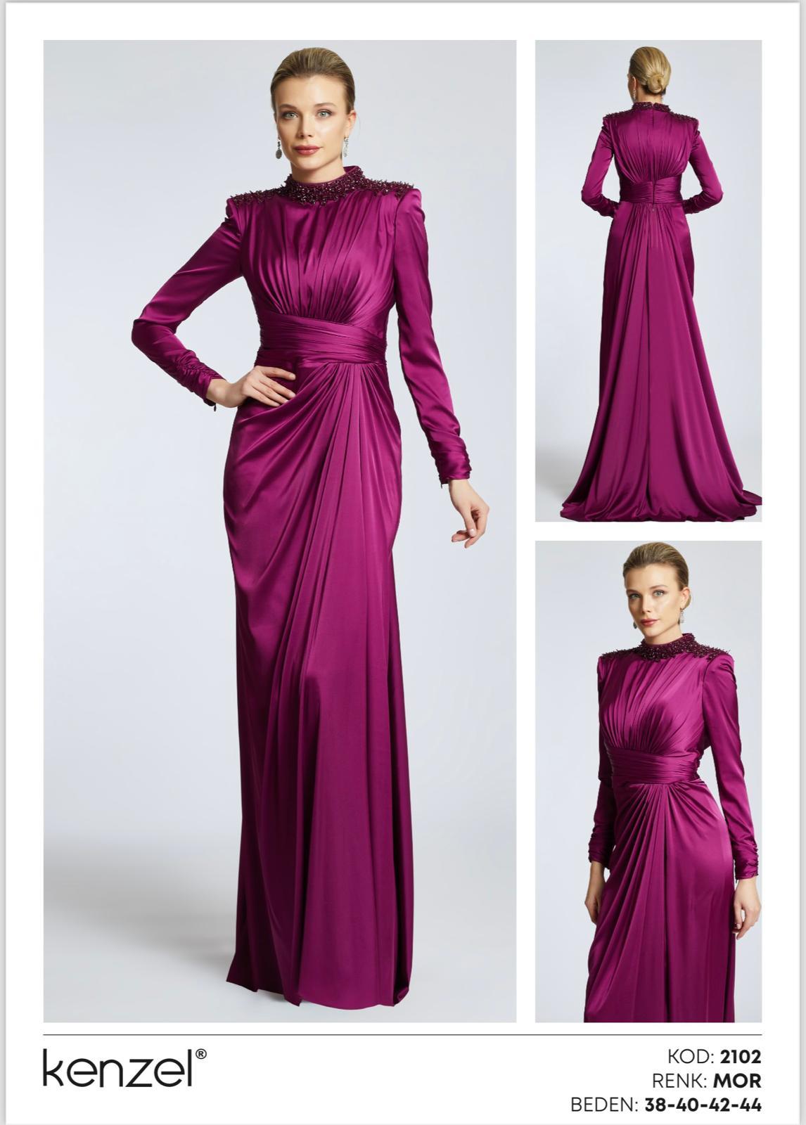 - Kenzel Yaka Detaylı Abiye Elbise-1001