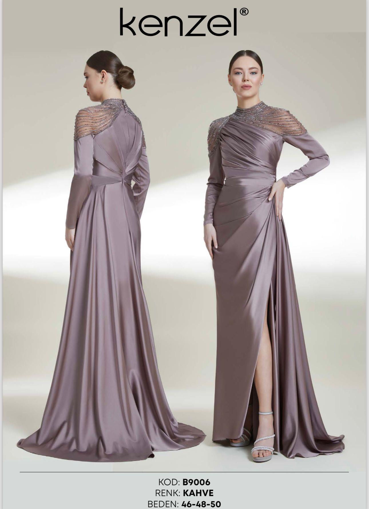 - Kenzel Kolları Otriş Detaylı Abiye Elbise-9021