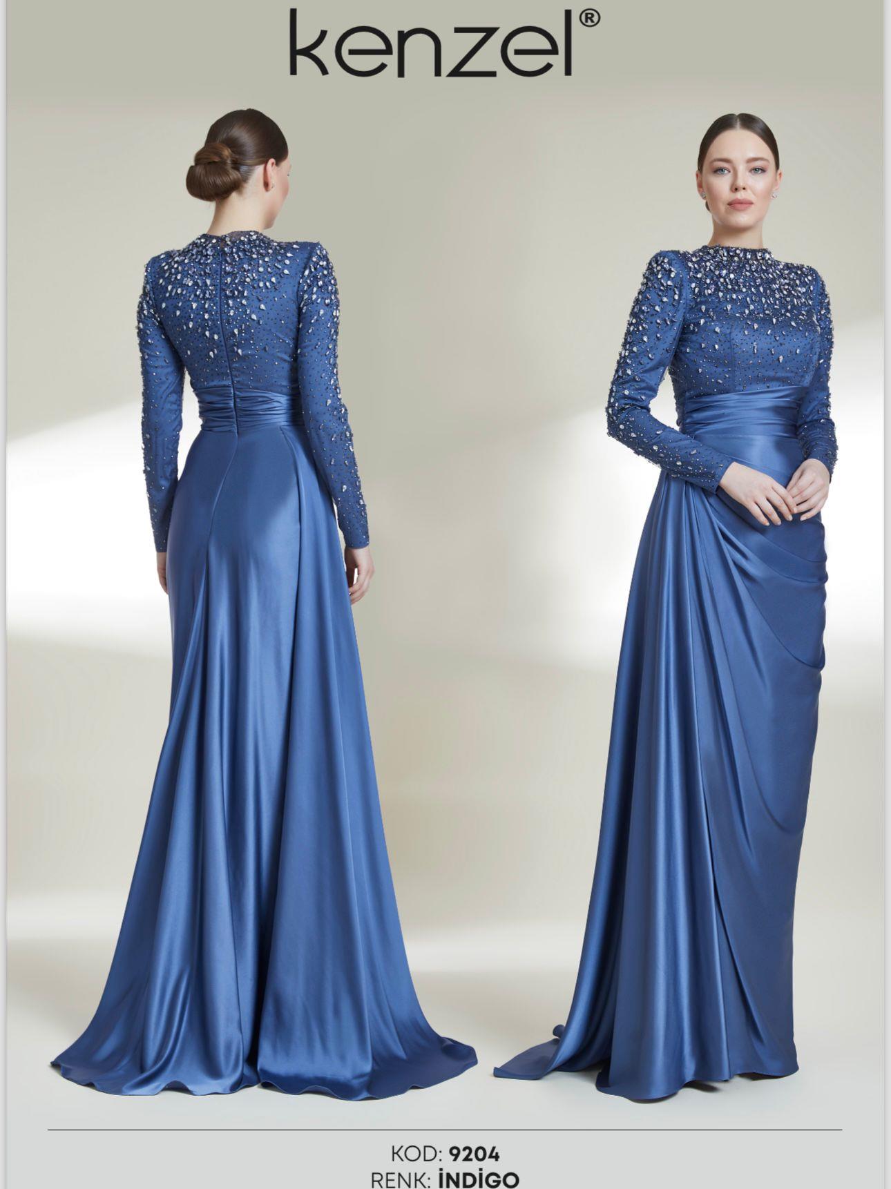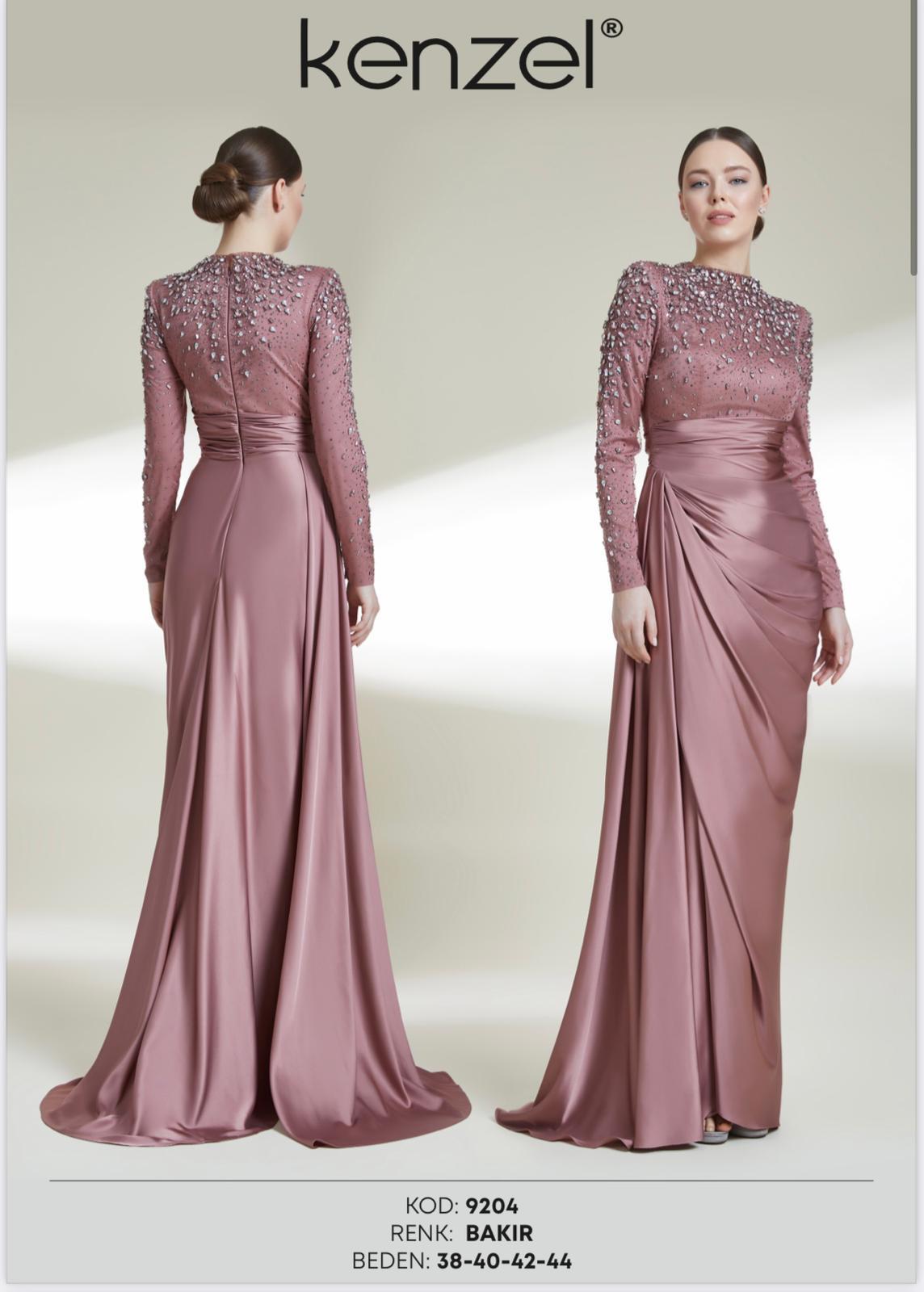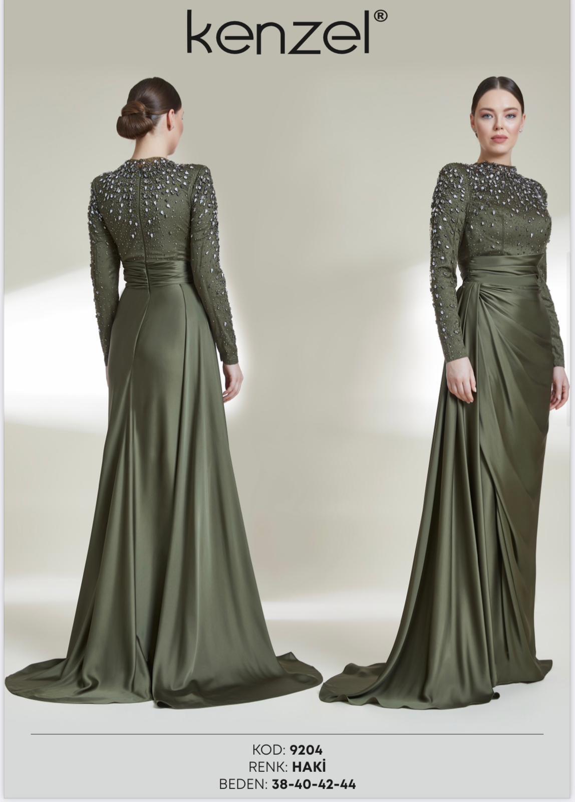 - Kenzel Kolları Otriş Detaylı Abiye Elbise-9021
