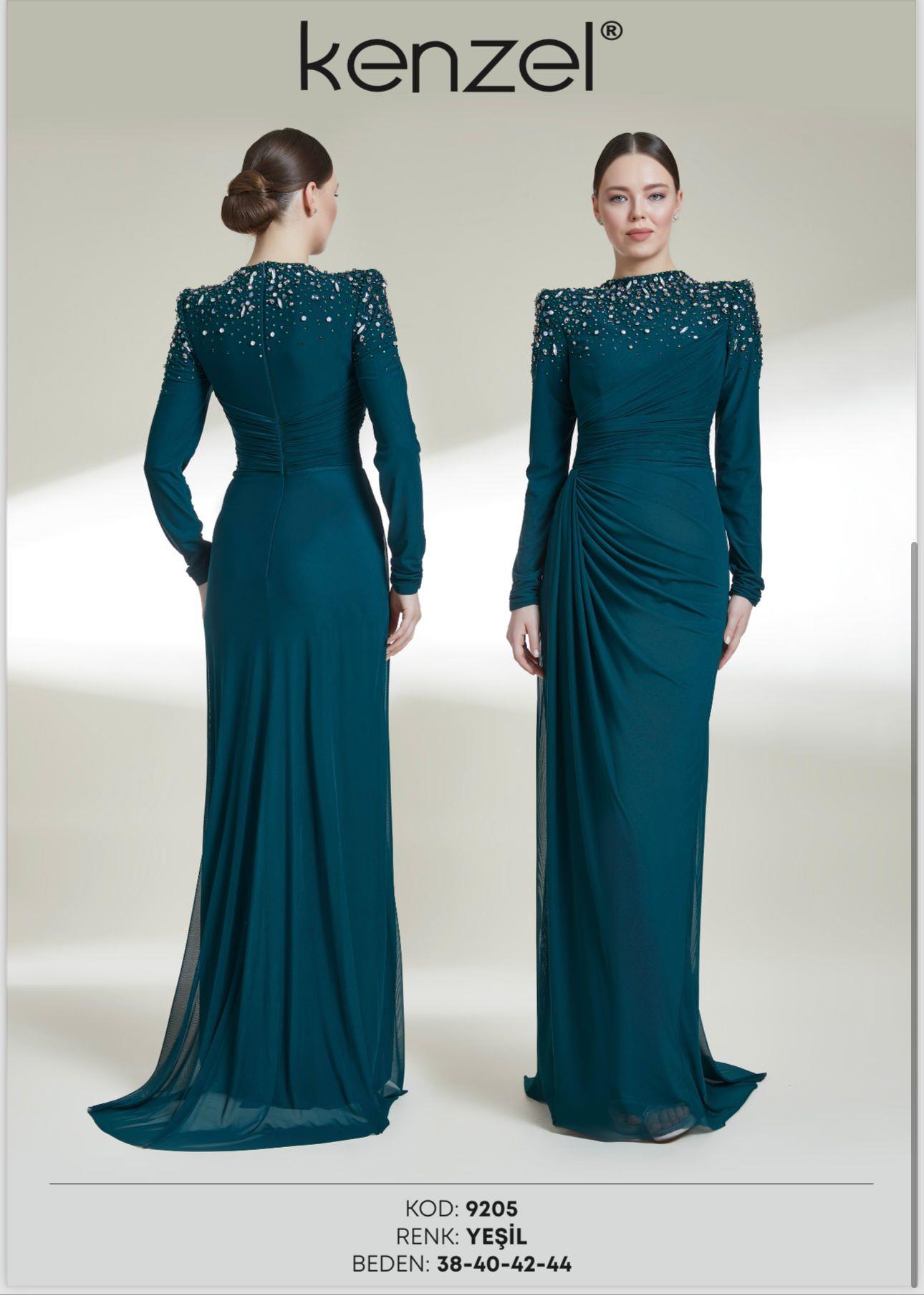 - Kenzel Kolları Otriş Detaylı Abiye Elbise-9021