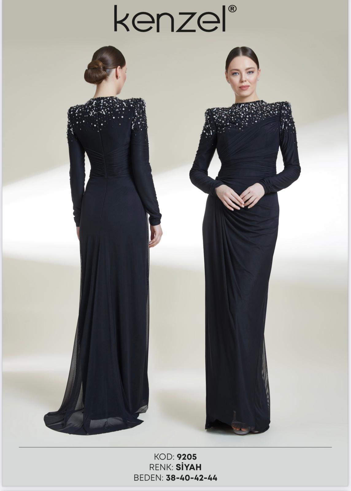 - Kenzel Üst Kısmı Taş Detaylı Abiye Elbise-9145