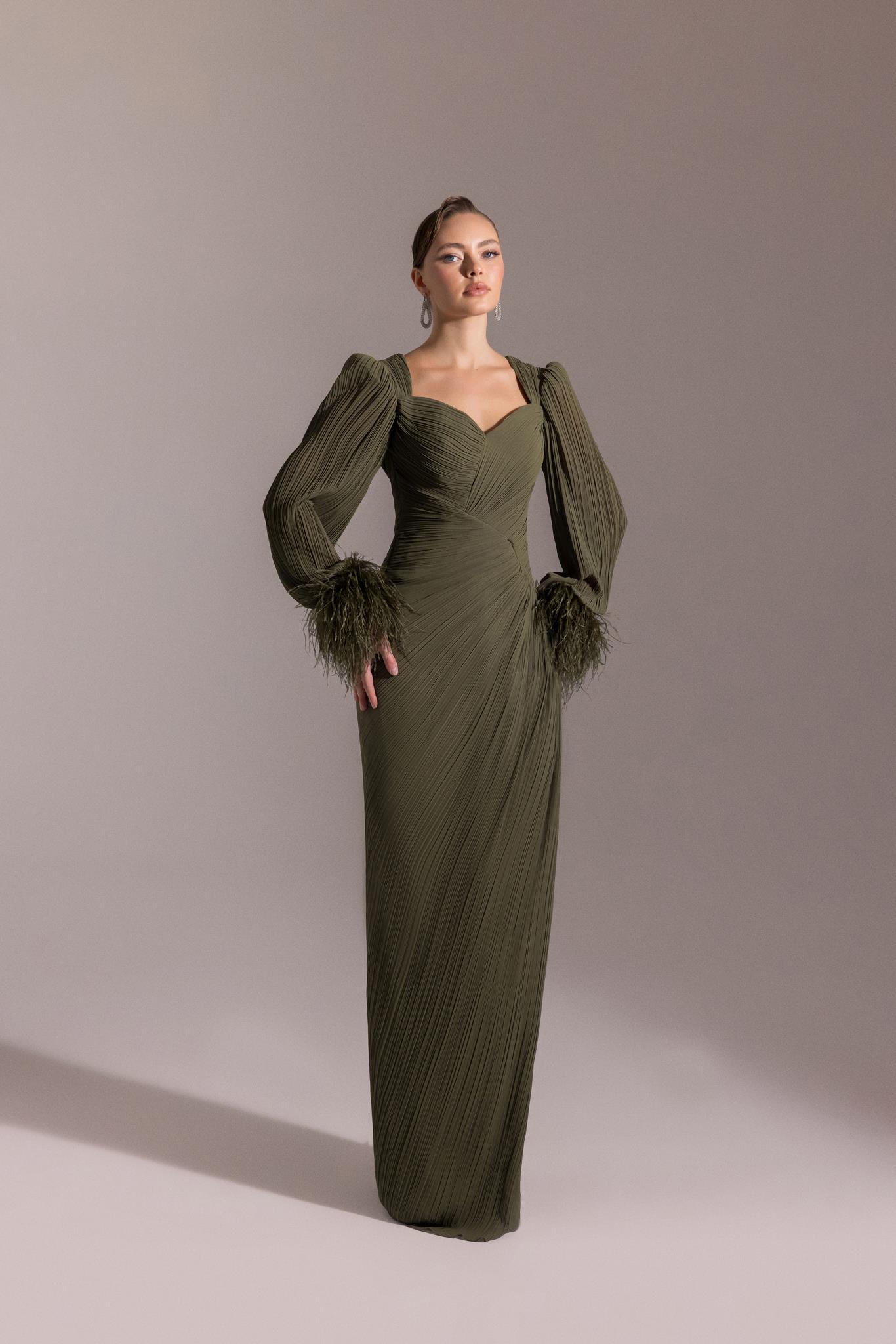 - Kenzel Kolları Otriş Detaylı Abiye Elbise-9021