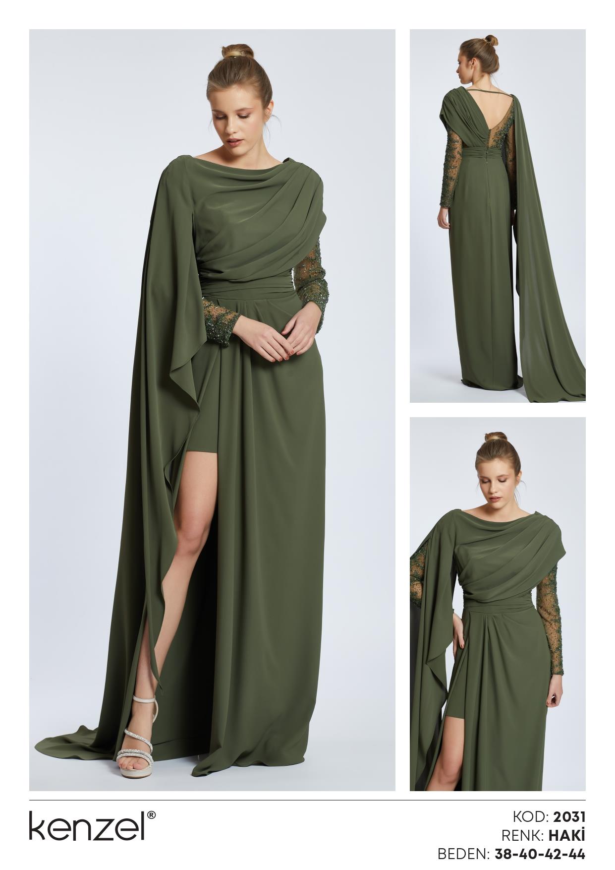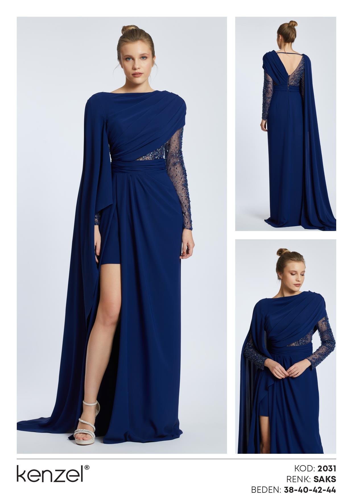 - Kenzel Pelerin Detaylı Abiye Elbise-2031