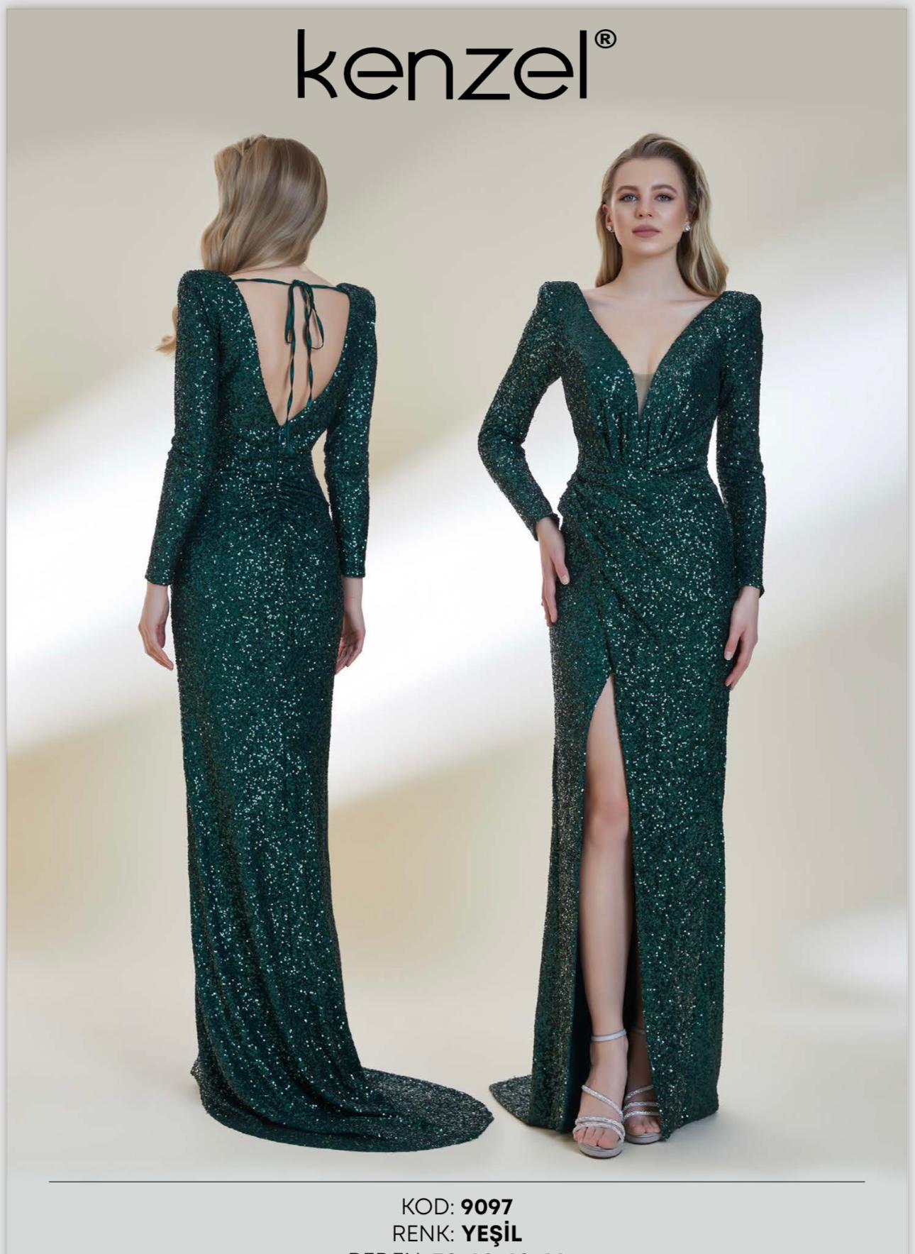 - Kenzel Kolları Otriş Detaylı Abiye Elbise-9021