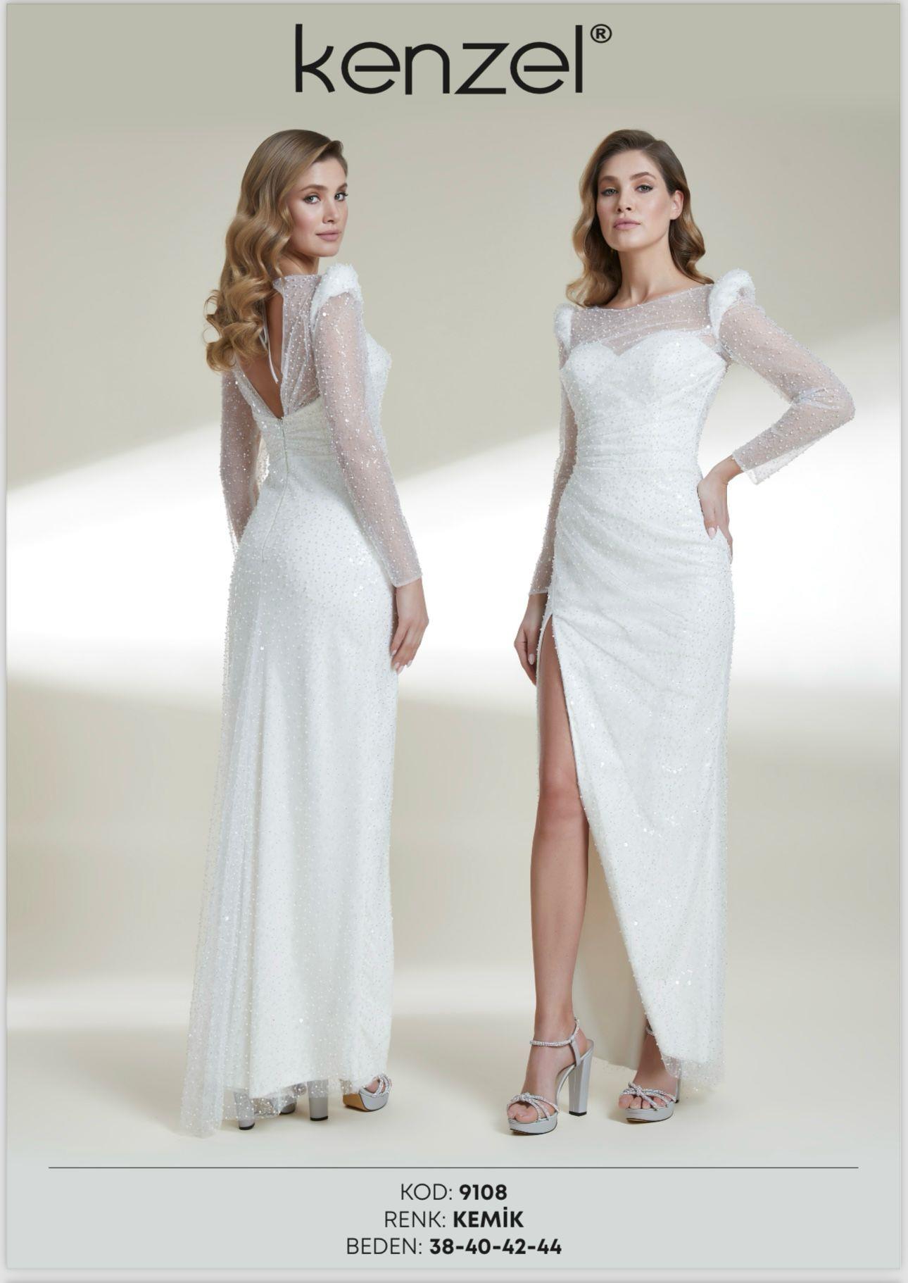 - Kenzel Kolları Otriş Detaylı Abiye Elbise-9021