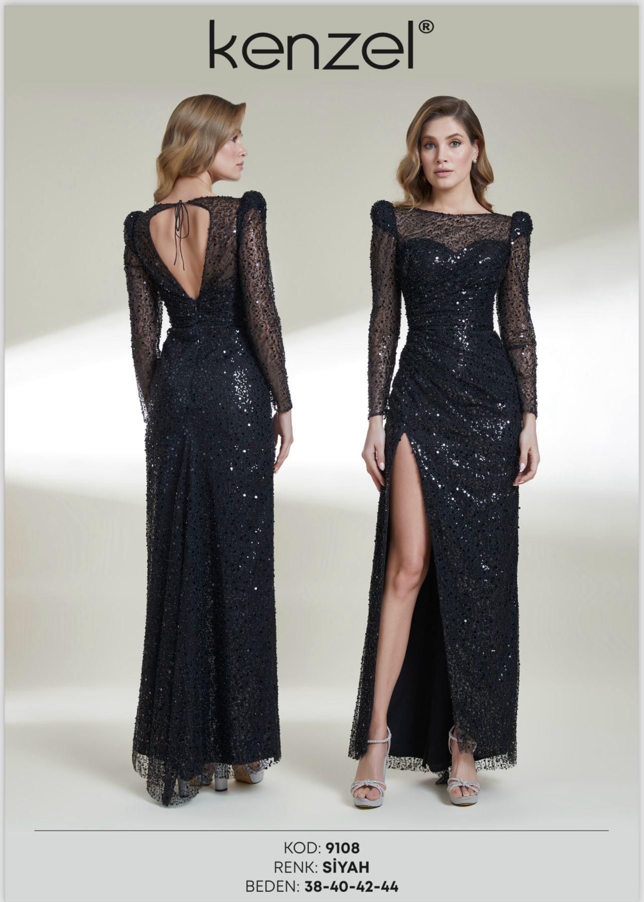 - Kenzel Tamamı Payetli Abiye Elbise-9108