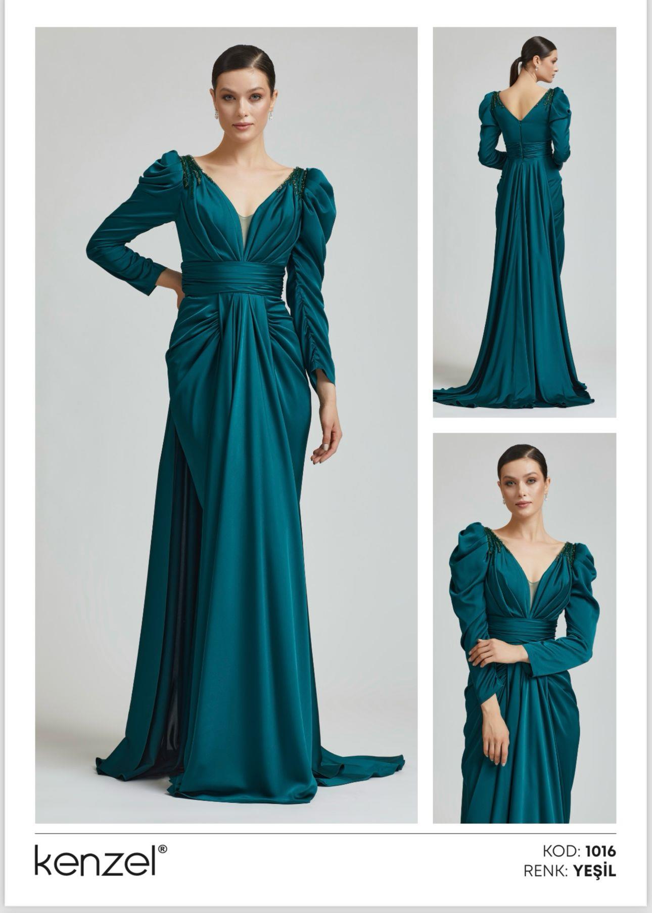 - Kenzel Kolları Otriş Detaylı Abiye Elbise-9021